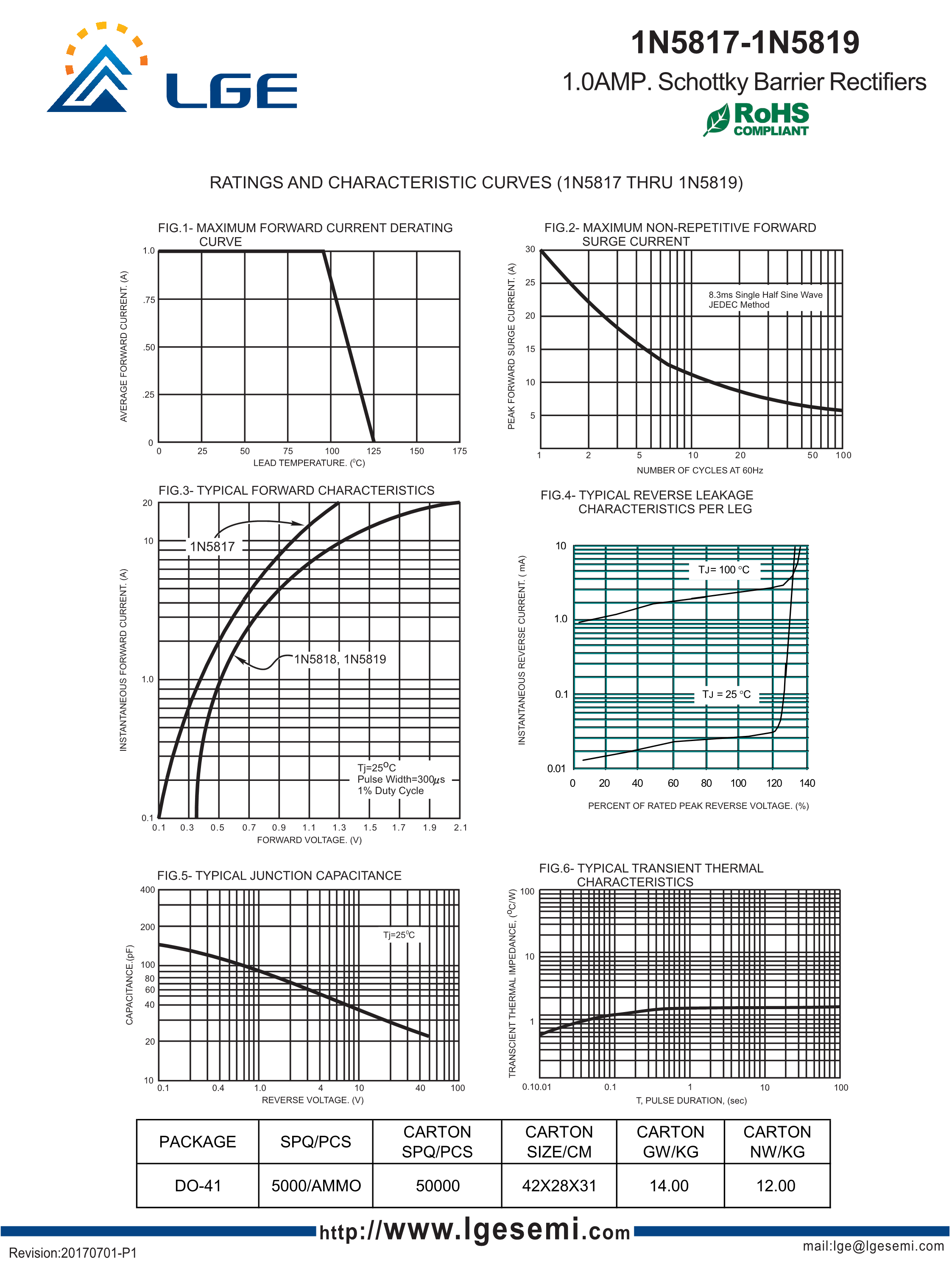 1N5819数据手册DO-41封装LGE(鲁光)PDF规格书,中英文下载