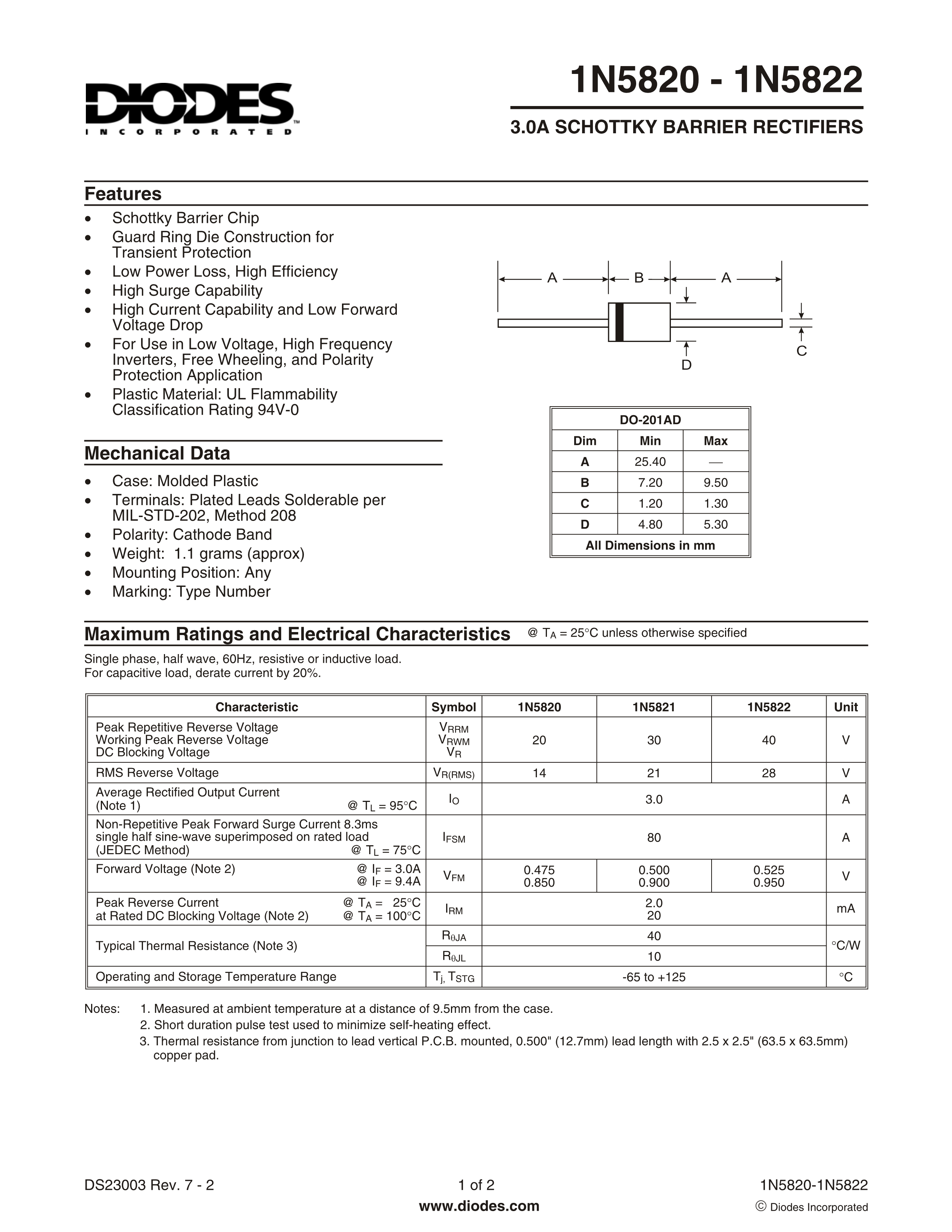 1N5822-B数据手册DO-27封装GOODWORK(固得沃克)PDF规格书,中英文下载