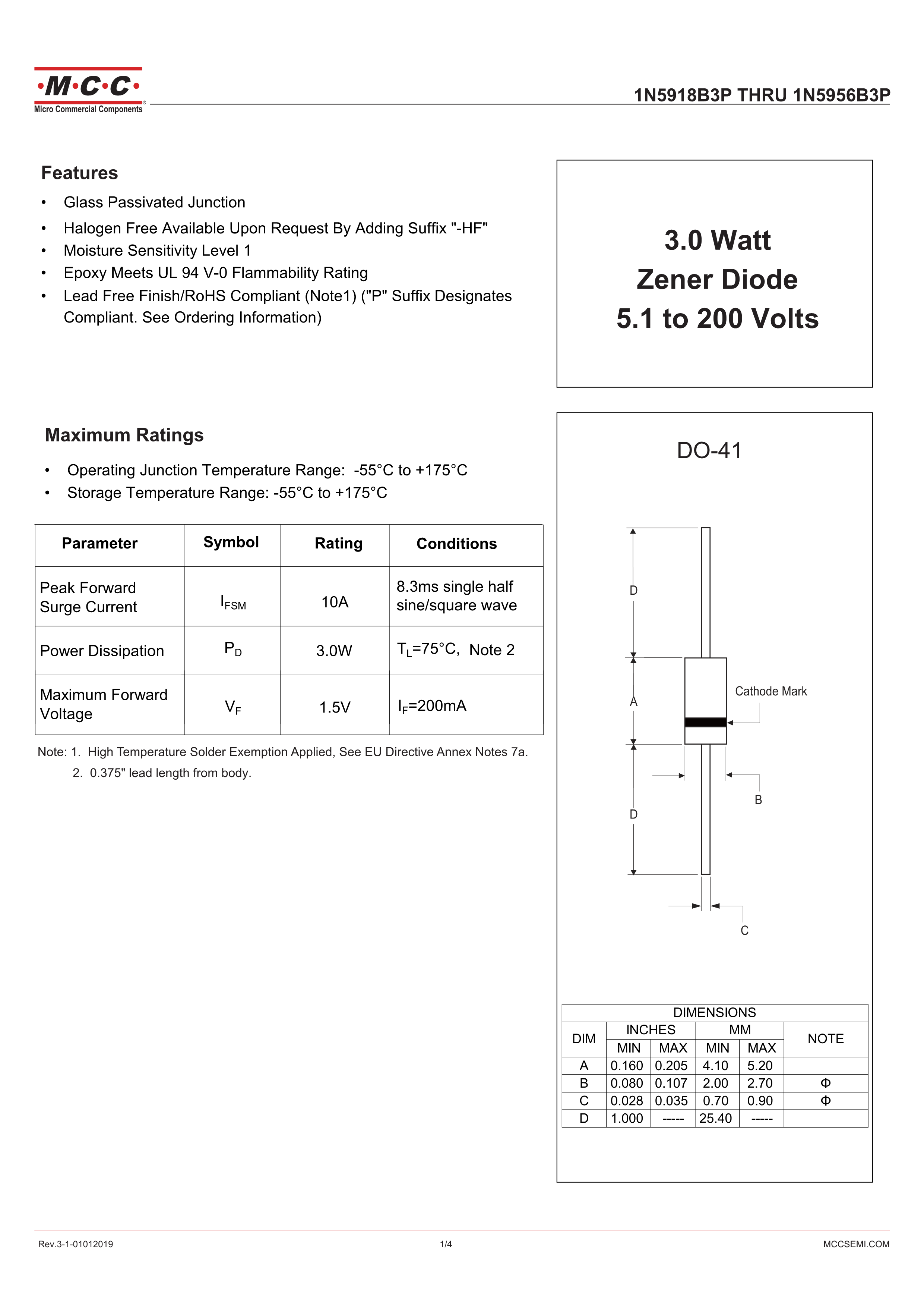 1N5935B3P-TP数据手册DO-41封装MCC(美微科)PDF规格书,中英文下载