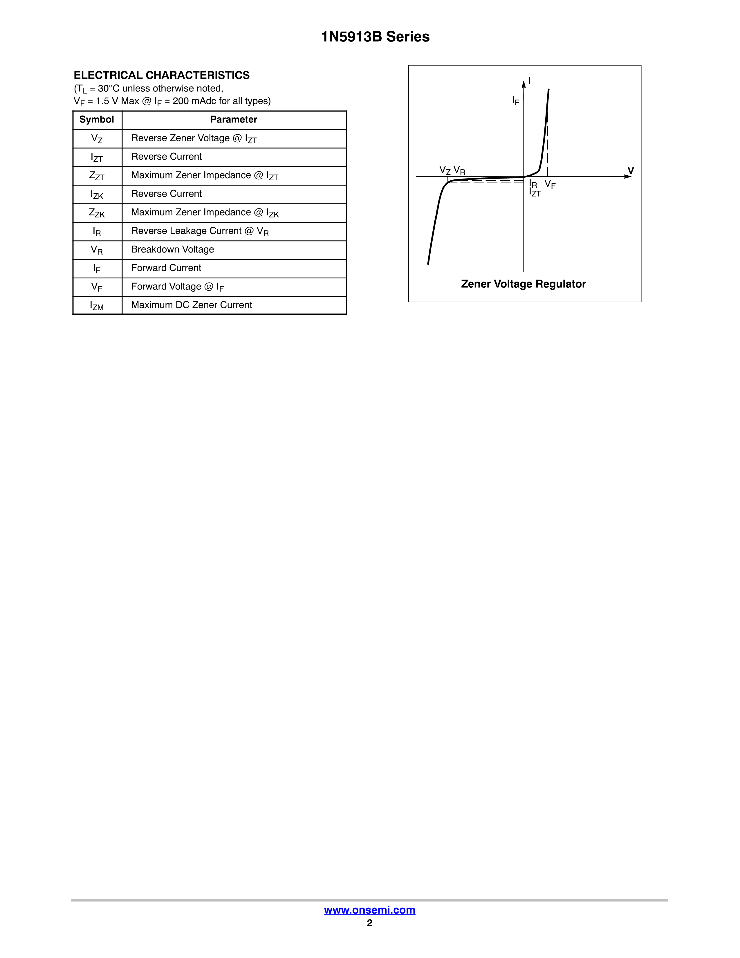 1N5955BRLG数据手册DO-41封装onsemi(安森美)PDF规格书,中英文下载