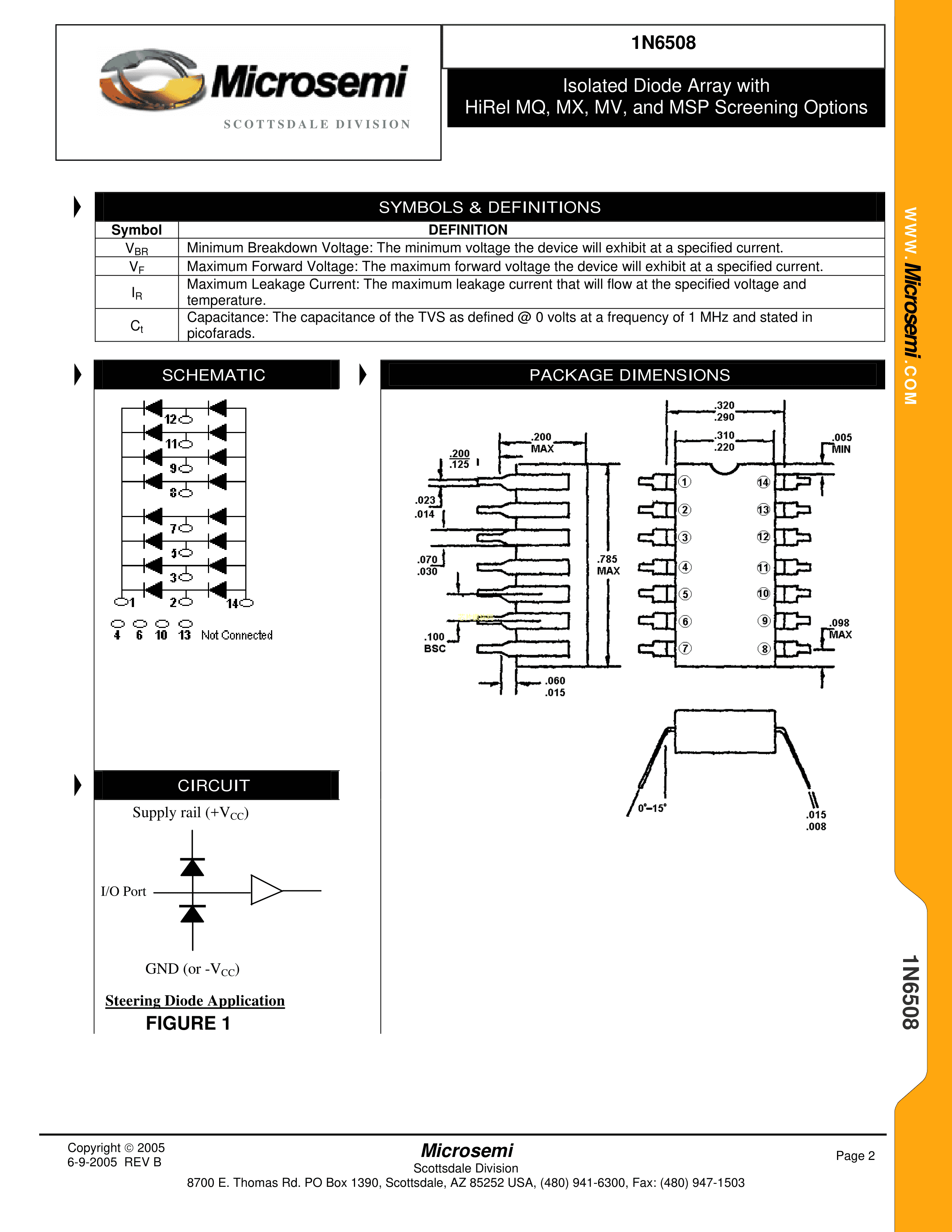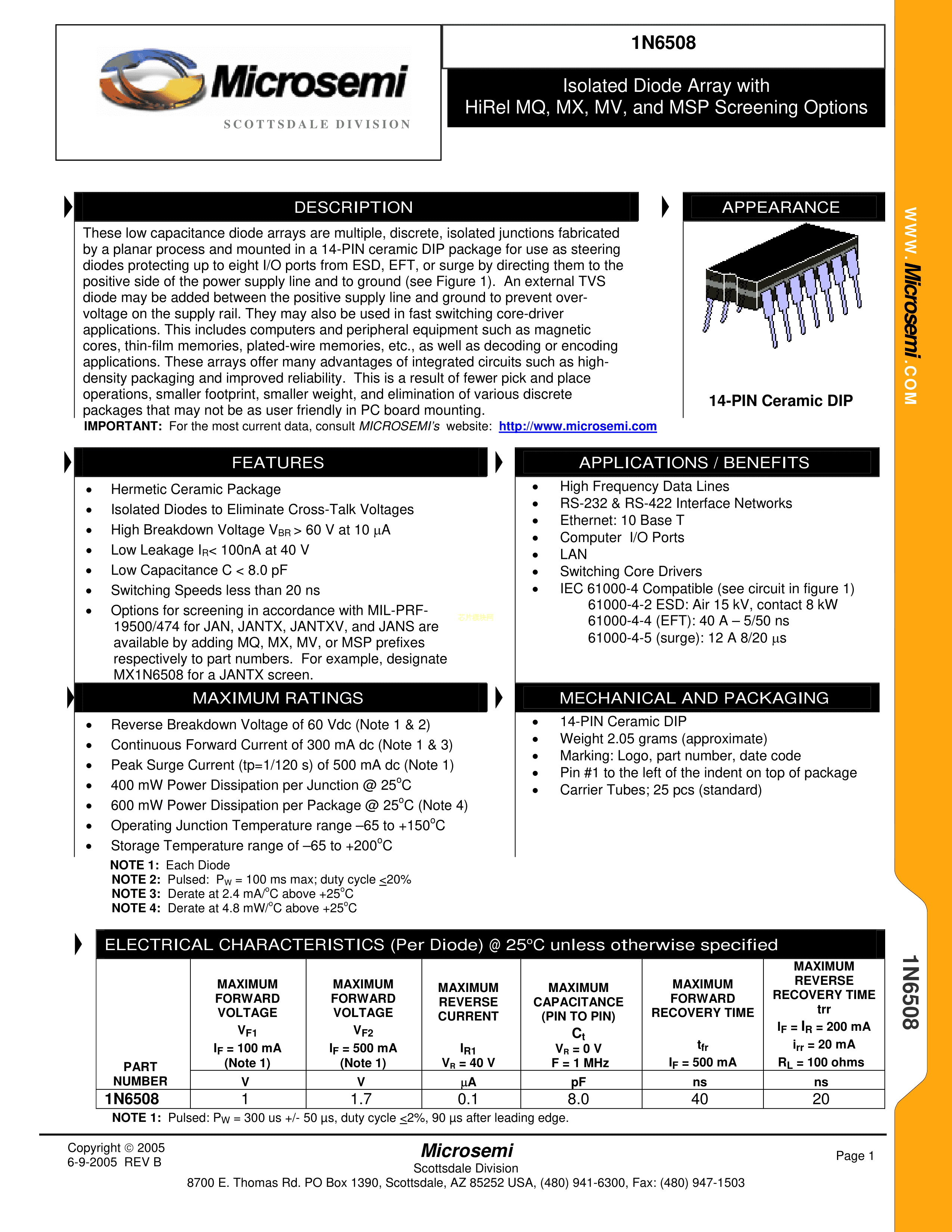 1N6508数据手册CDIP-14封装Microsemi(美高森美)PDF规格书,中英文下载