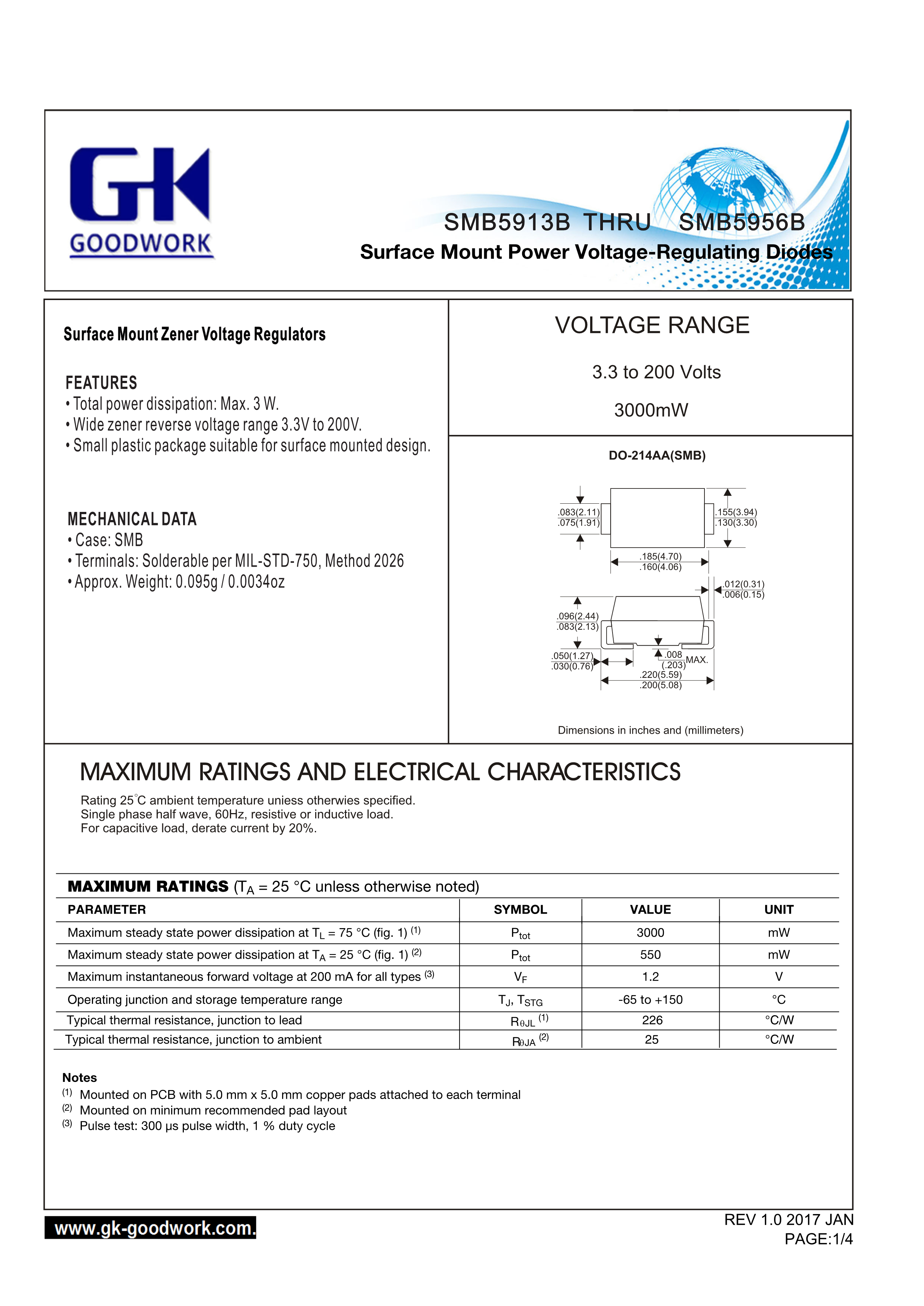 1SMB5917B数据手册SMB(DO-214AA)封装GOODWORK(固得沃克)PDF规格书,中