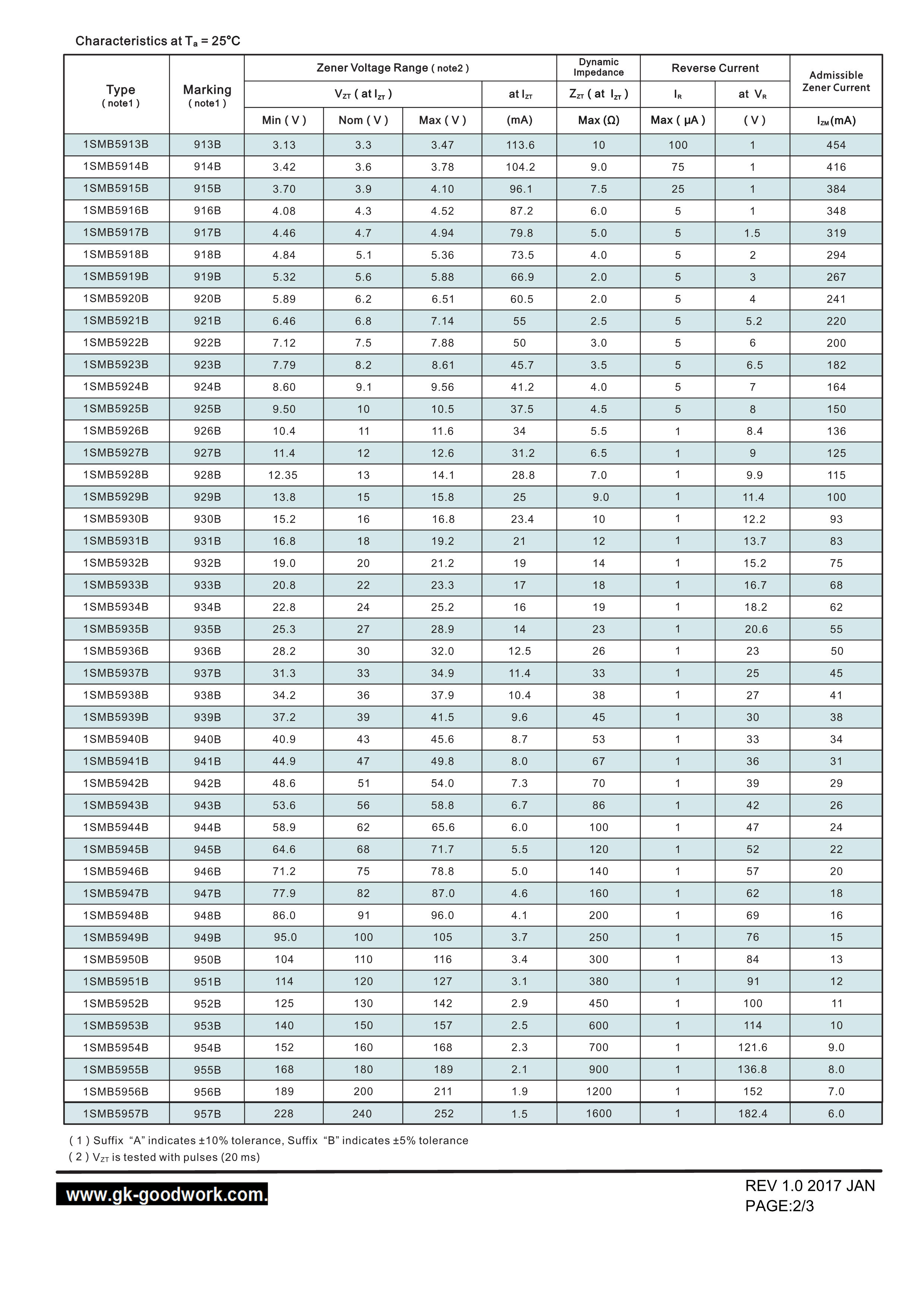 1SMB5919B数据手册SMB(DO-214AA)封装GOODWORK(固得沃克)PDF规格书,中