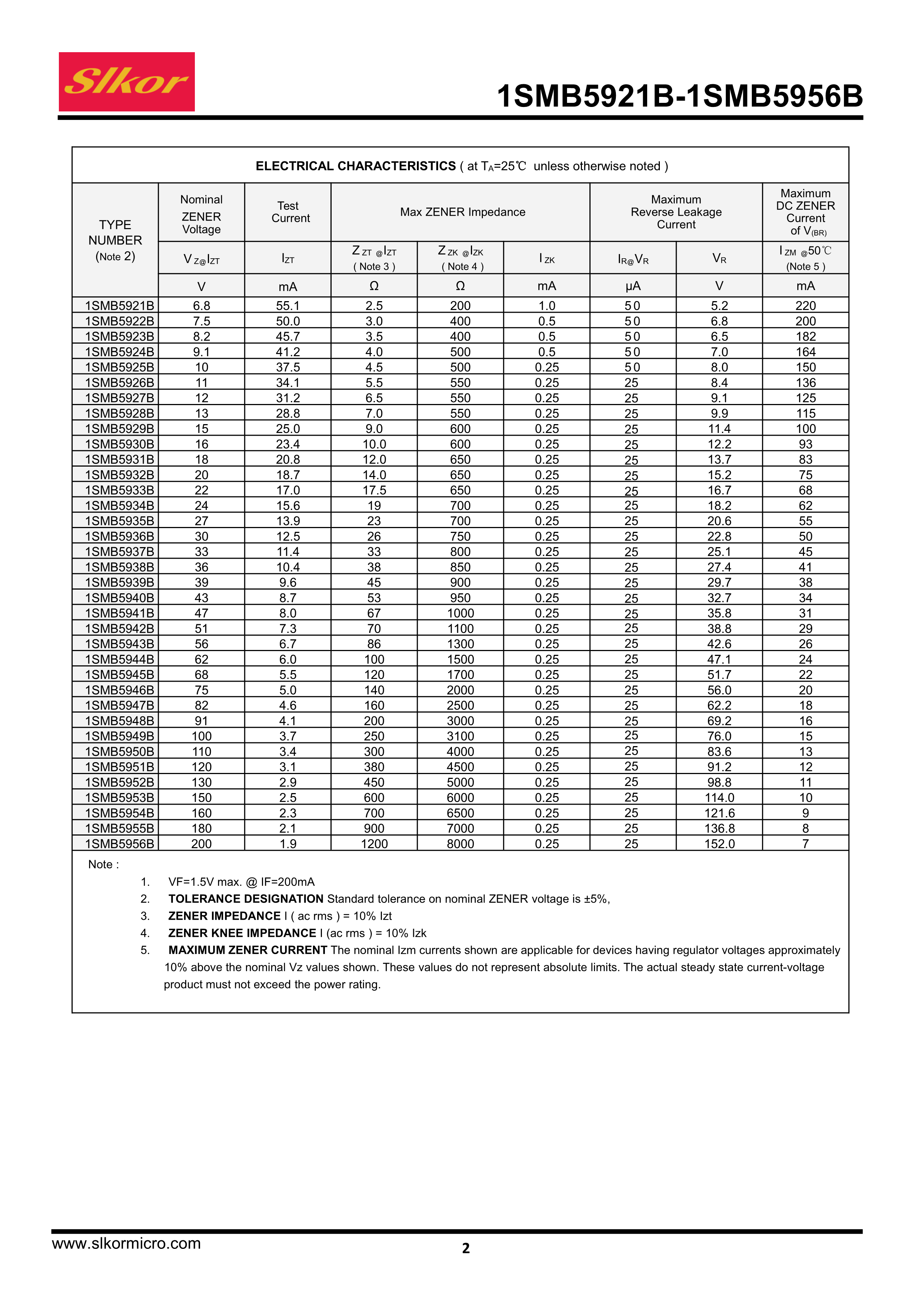 1SMB5923B数据手册SMB封装Slkor(萨科微)PDF规格书,中英文下载