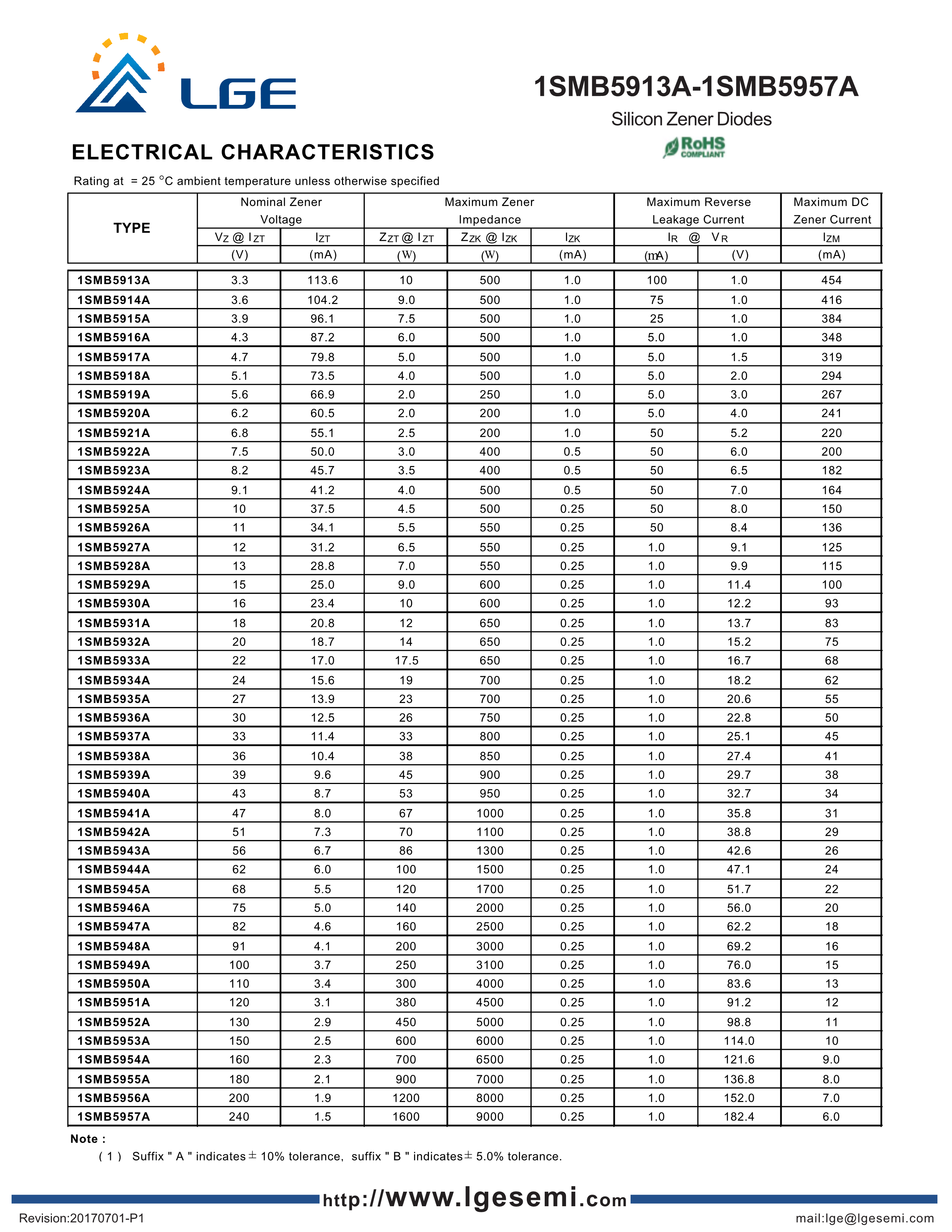 1SMB5928B数据手册SMB封装LGE(鲁光)PDF规格书,中英文下载