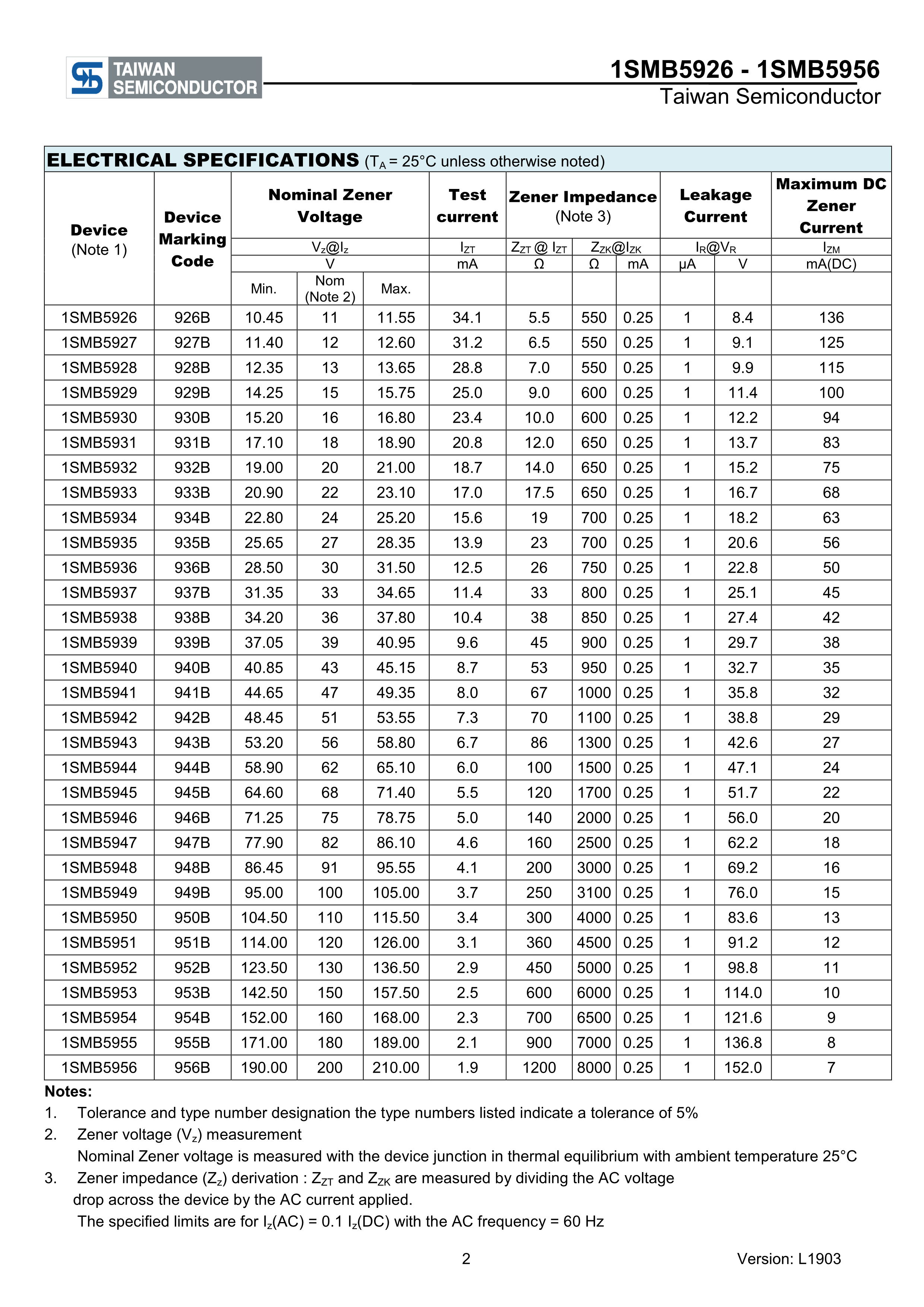 1SMB5930 M4G数据手册SMB封装Taiwan Semiconductor(台湾半导体)PD