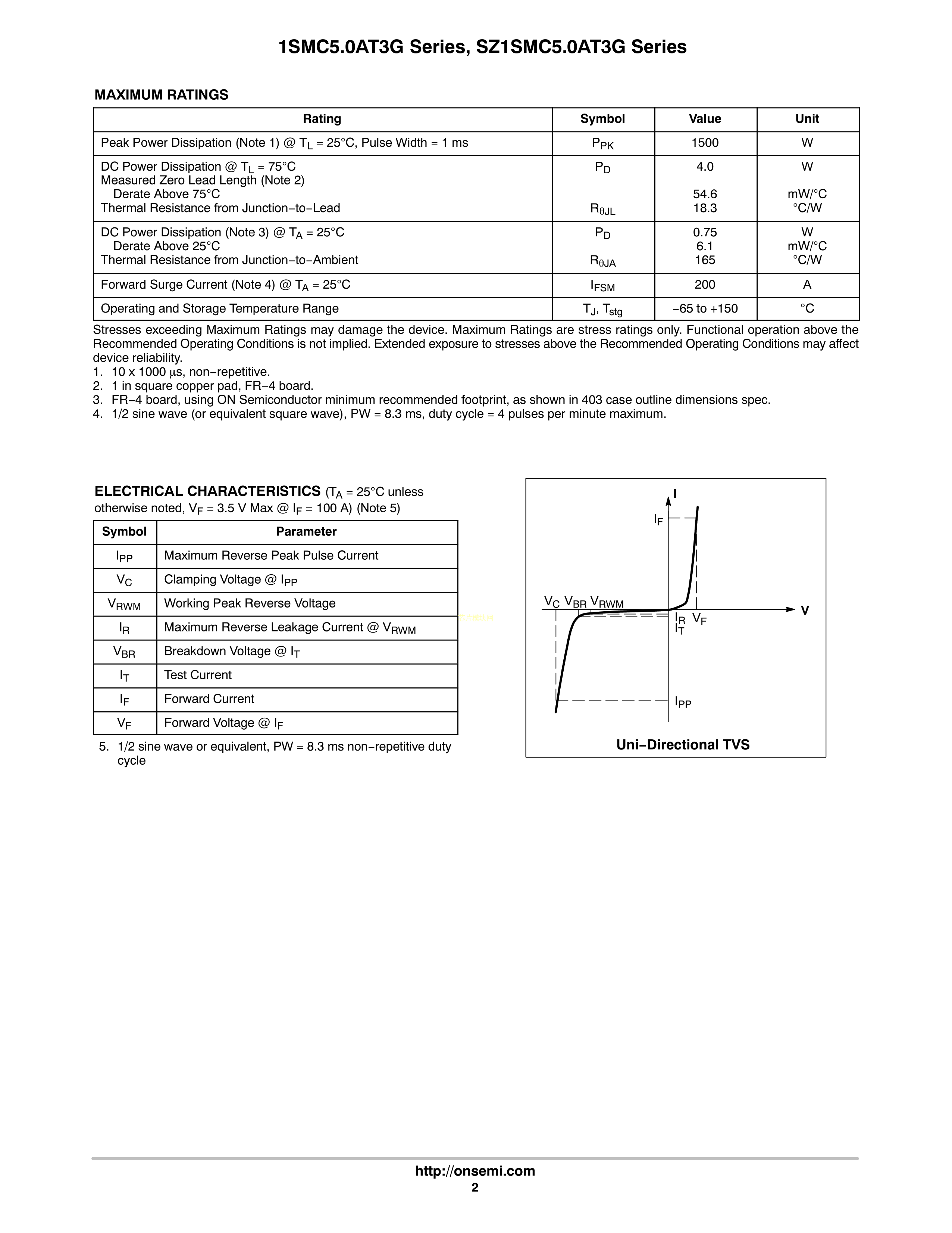 1SMC43AT3G数据手册SMC(DO-214AB)封装onsemi(安森美)PDF规格书,中英文