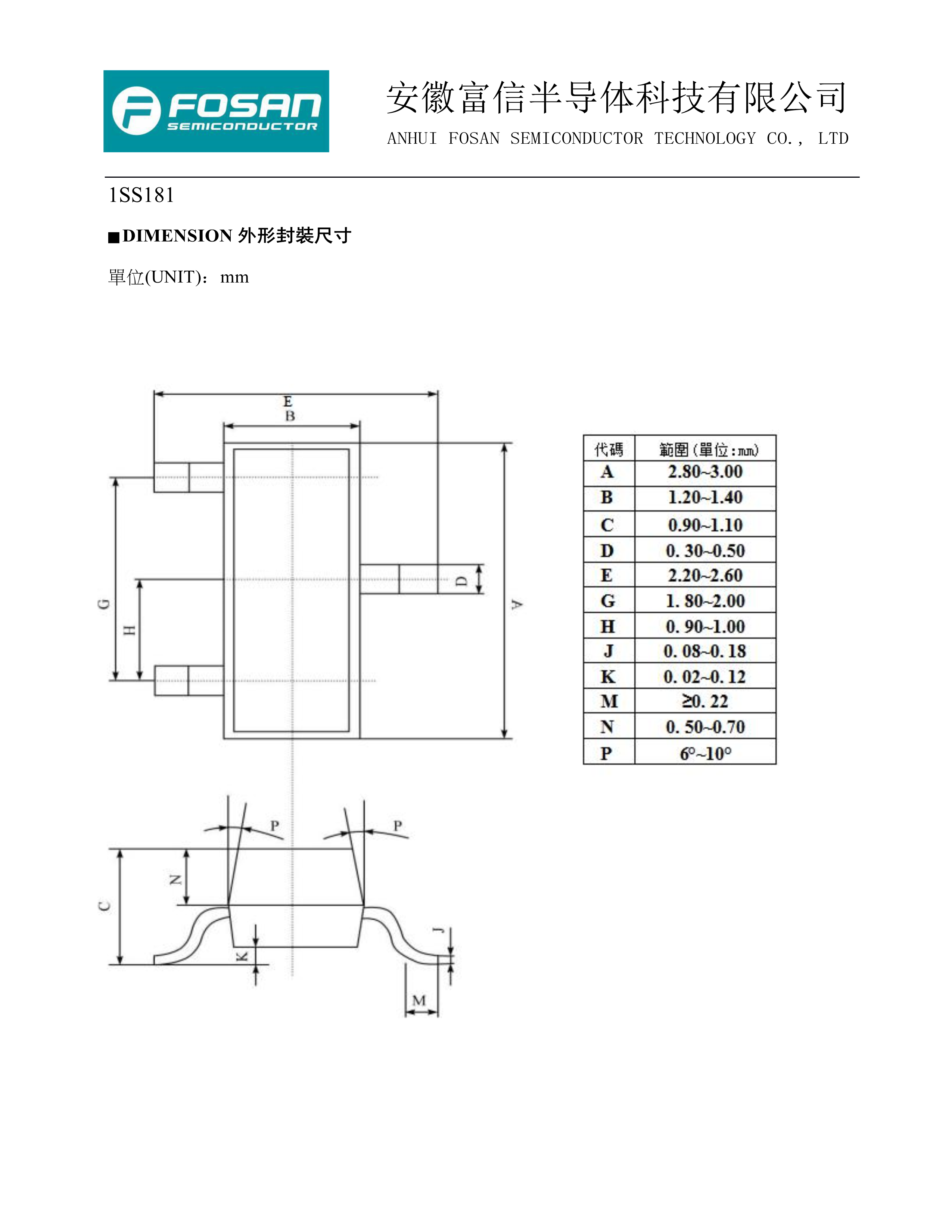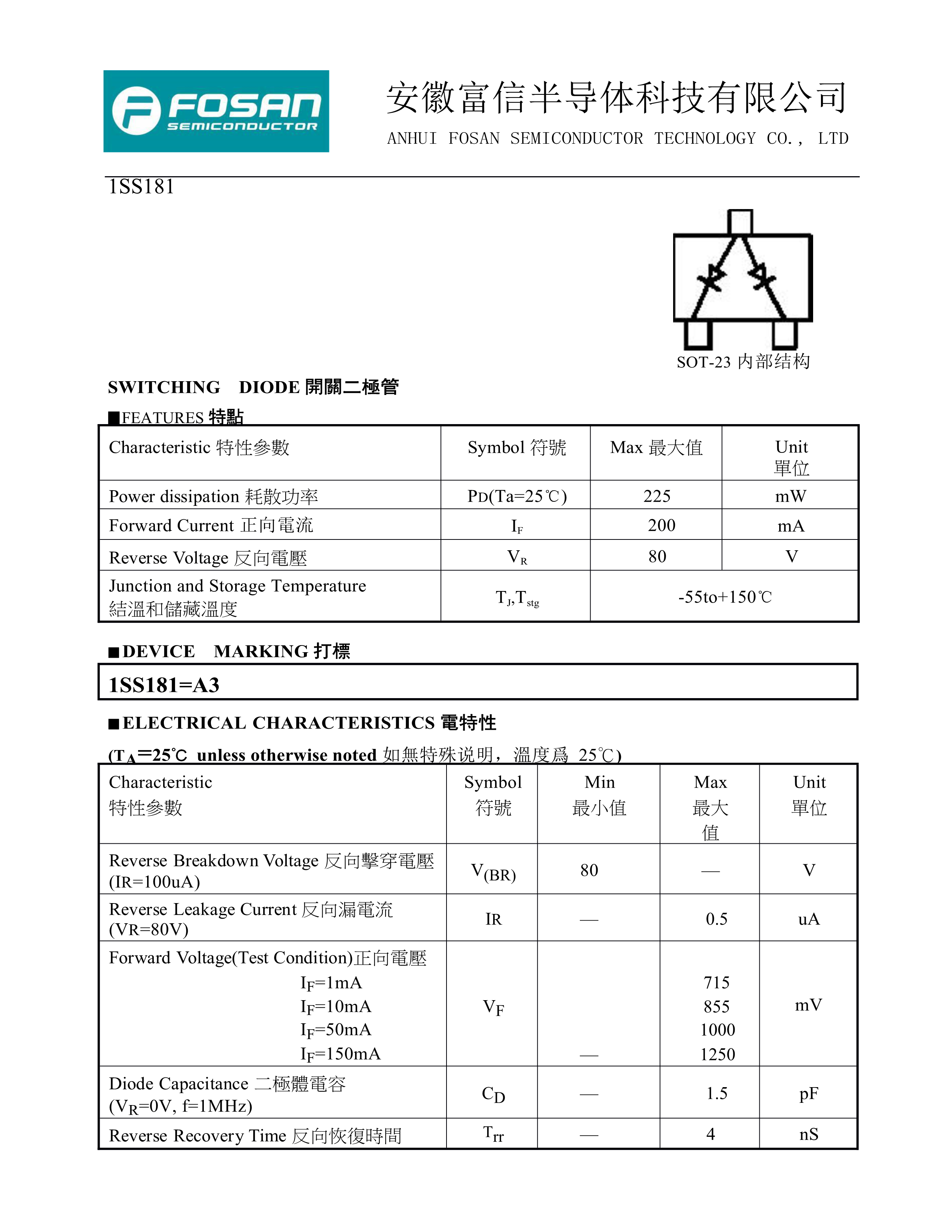 1SS181 A3数据手册SOT-23封装FOSAN(富信)PDF规格书,中英文下载