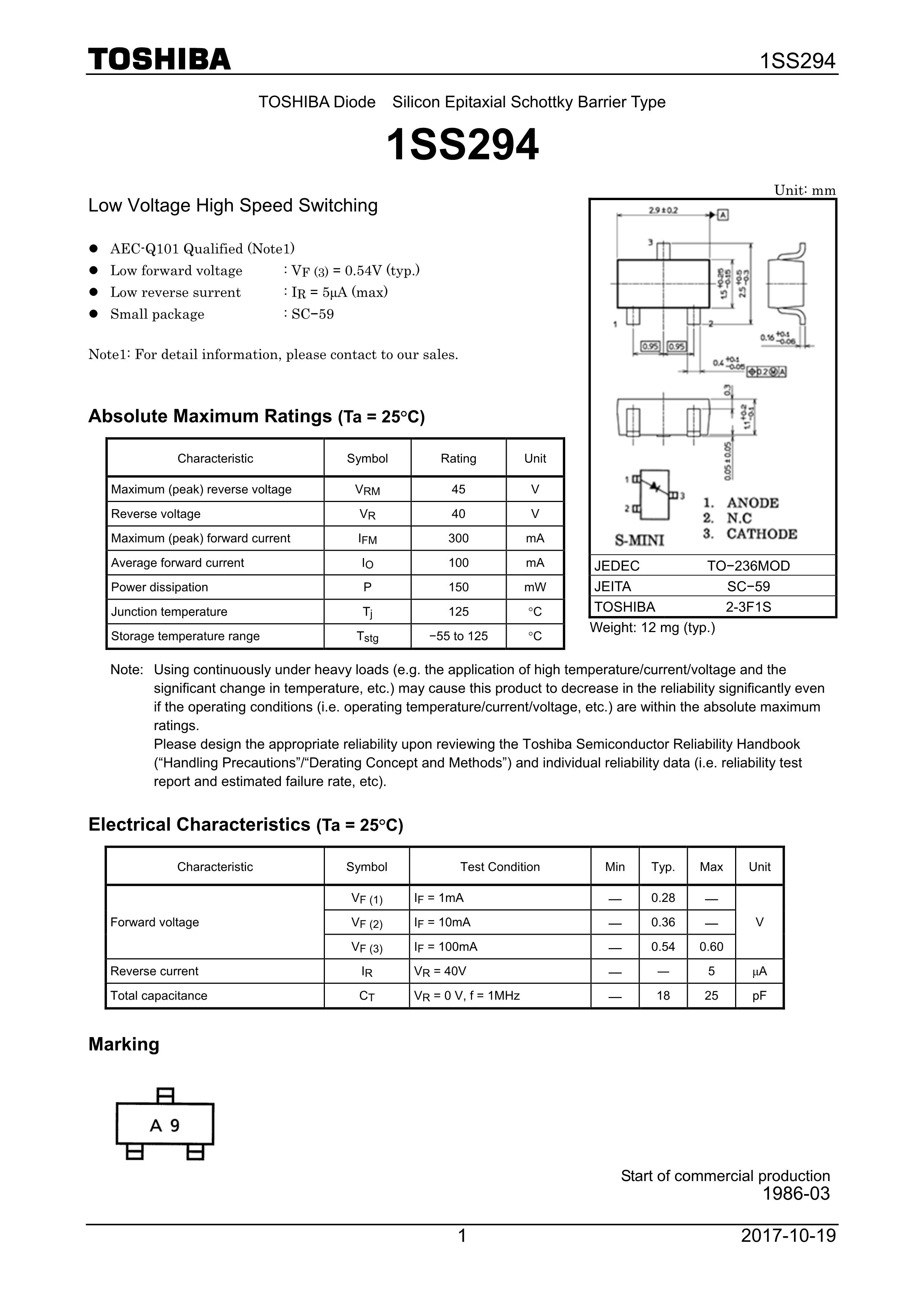 1SS294LF(T数据手册SC-59封装TOSHIBA(东芝)PDF规格书,中英文下载