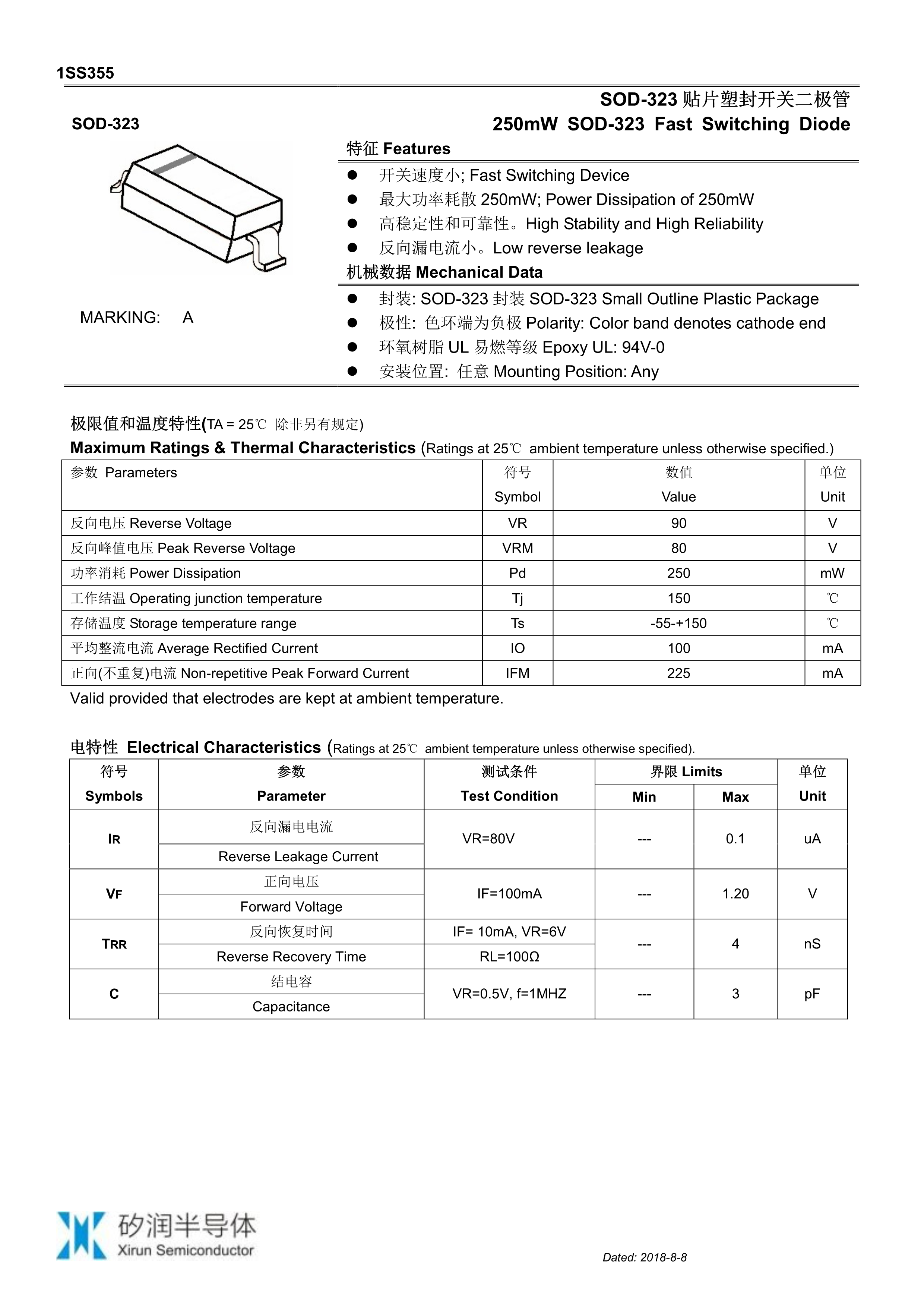 1SS355-A数据手册SOD-323封装ZRE(治润)PDF规格书,中英文下载