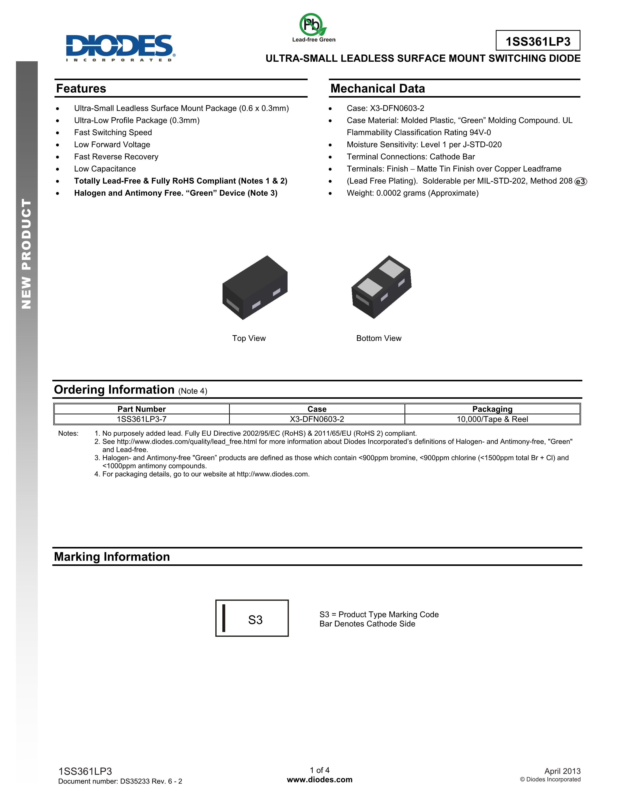 1SS361LP3-7数据手册X3-DFN0603-2封装DIODES(美台)PDF规格书,中英文下