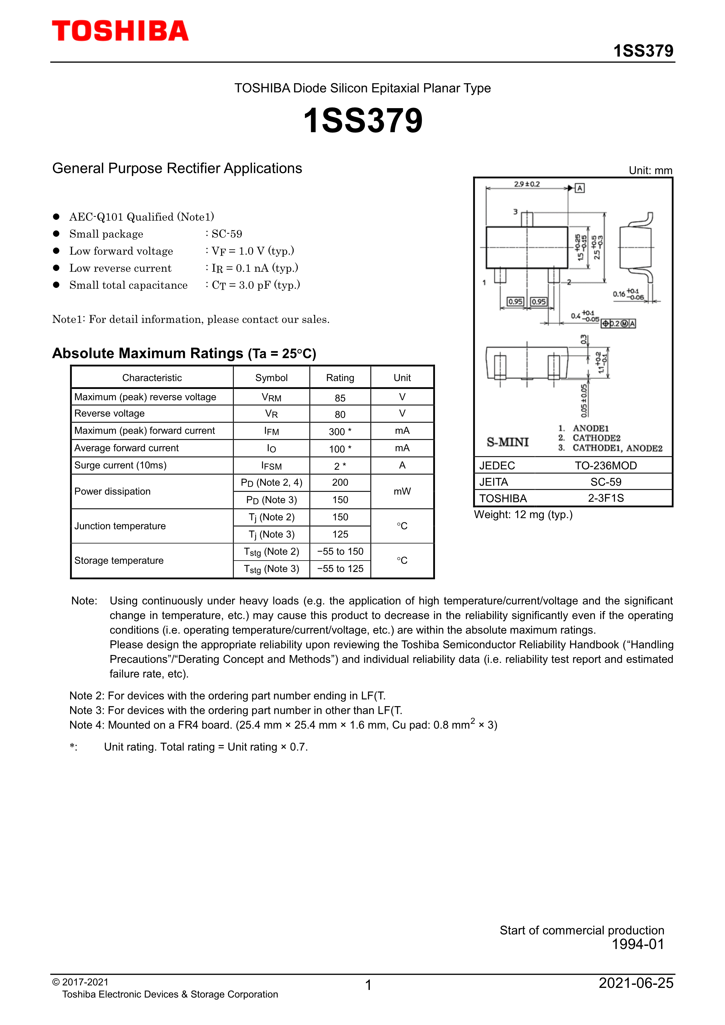 1SS379(TE85LF)数据手册-封装TOSHIBA(东芝)PDF规格书,中英文下载