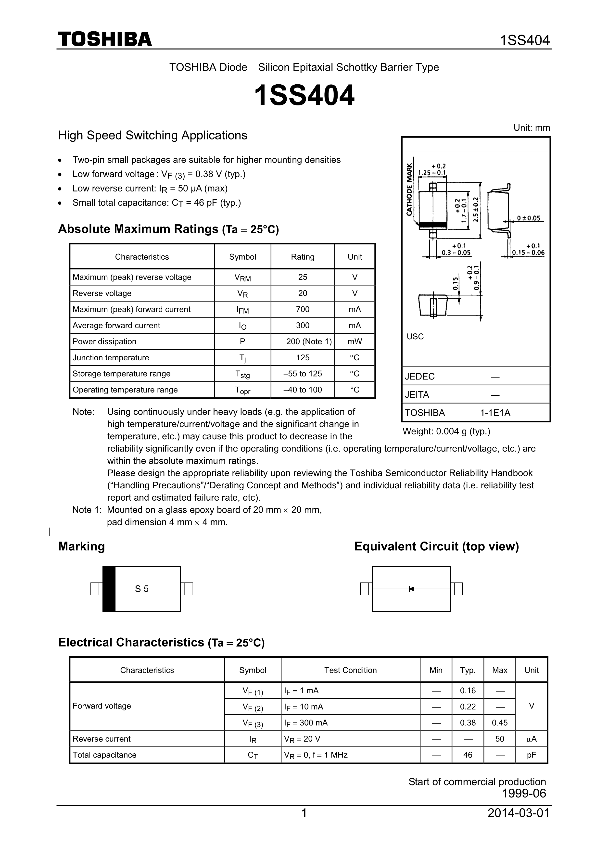 1SS404H3F数据手册SOD-323封装TOSHIBA(东芝)PDF规格书,中英文下载