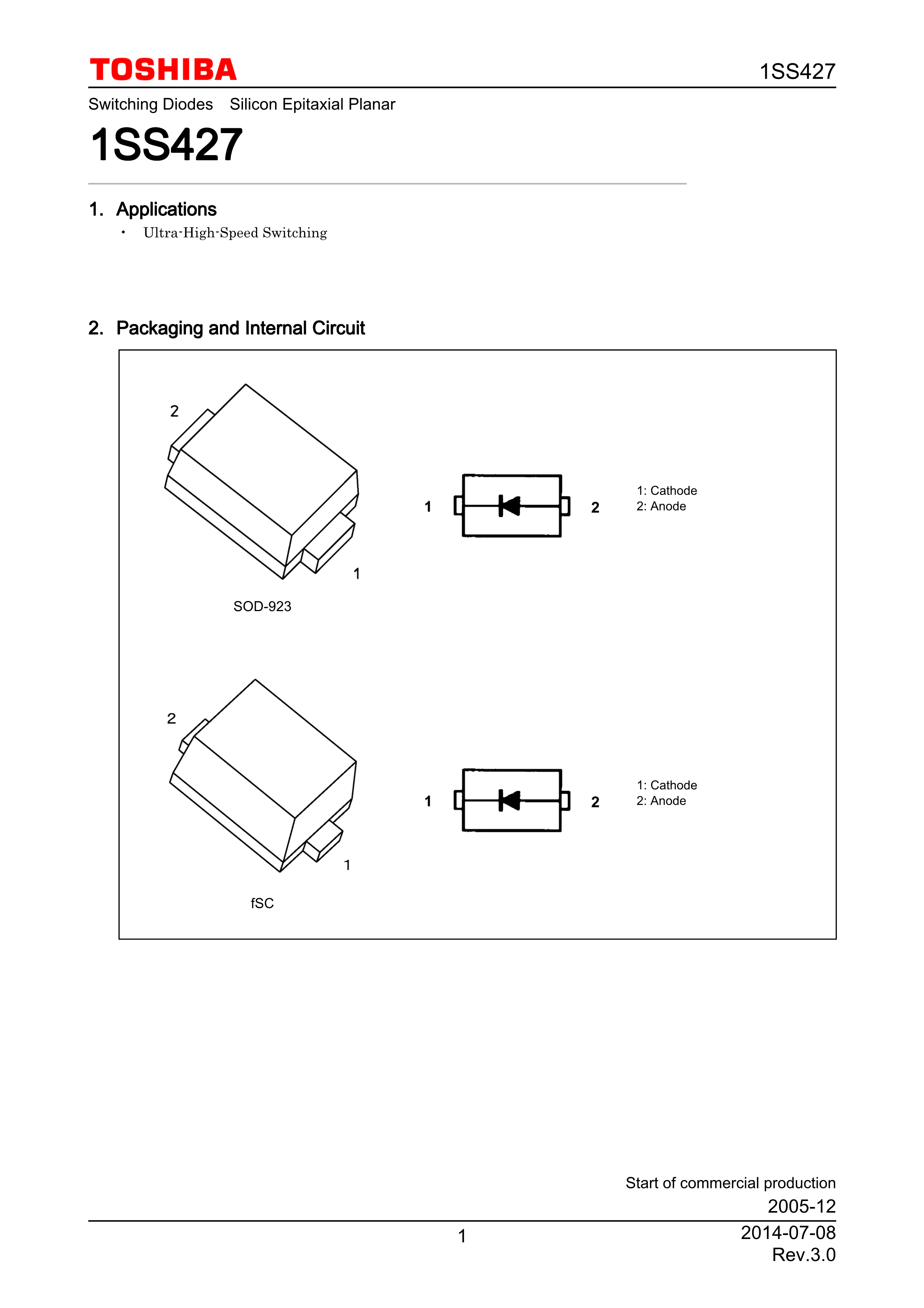 1SS427L3M(T数据手册SOD-923封装TOSHIBA(东芝)PDF规格书,中英文下载