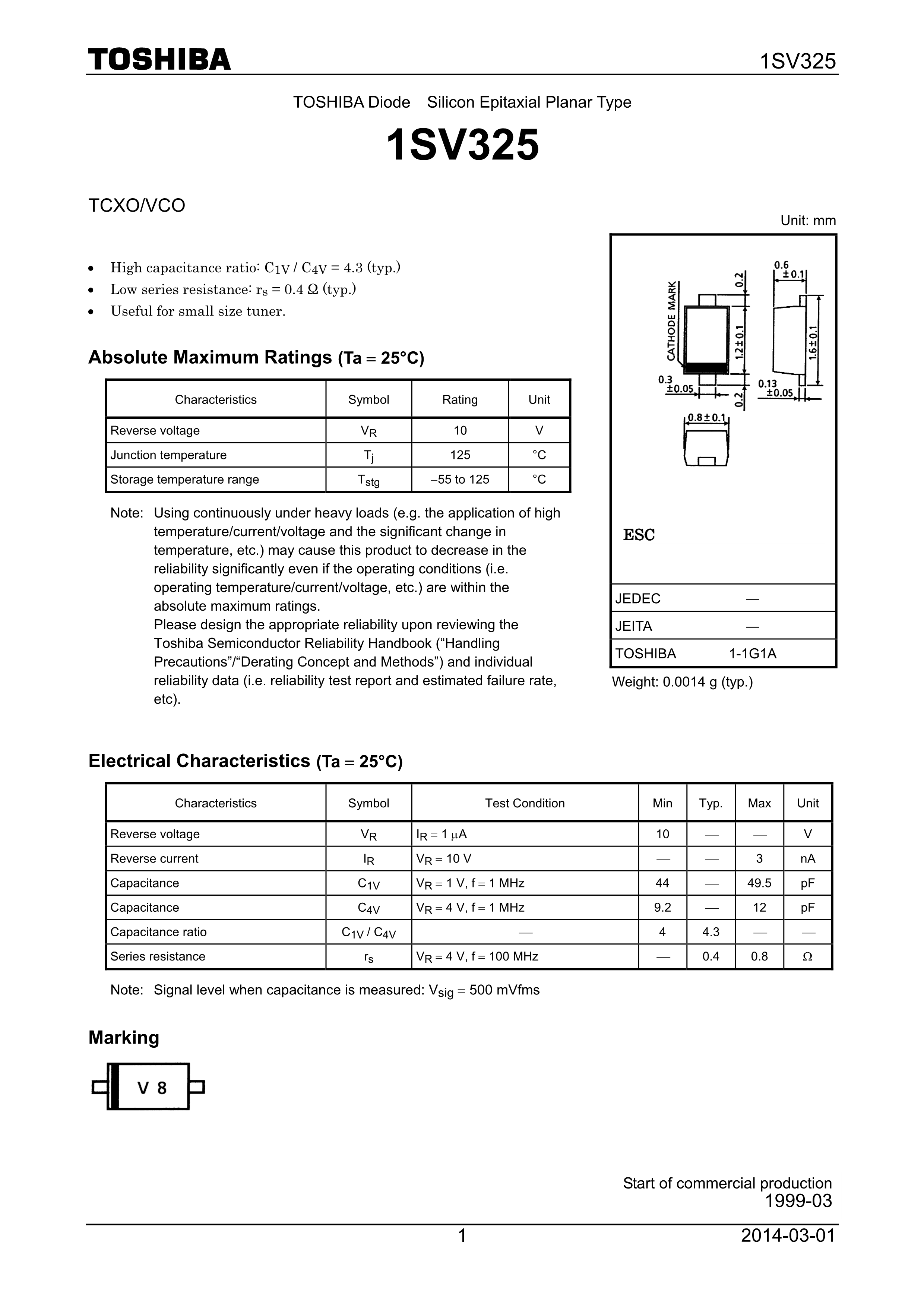 1SV325H3F数据手册SOD-523封装TOSHIBA(东芝)PDF规格书,中英文下载