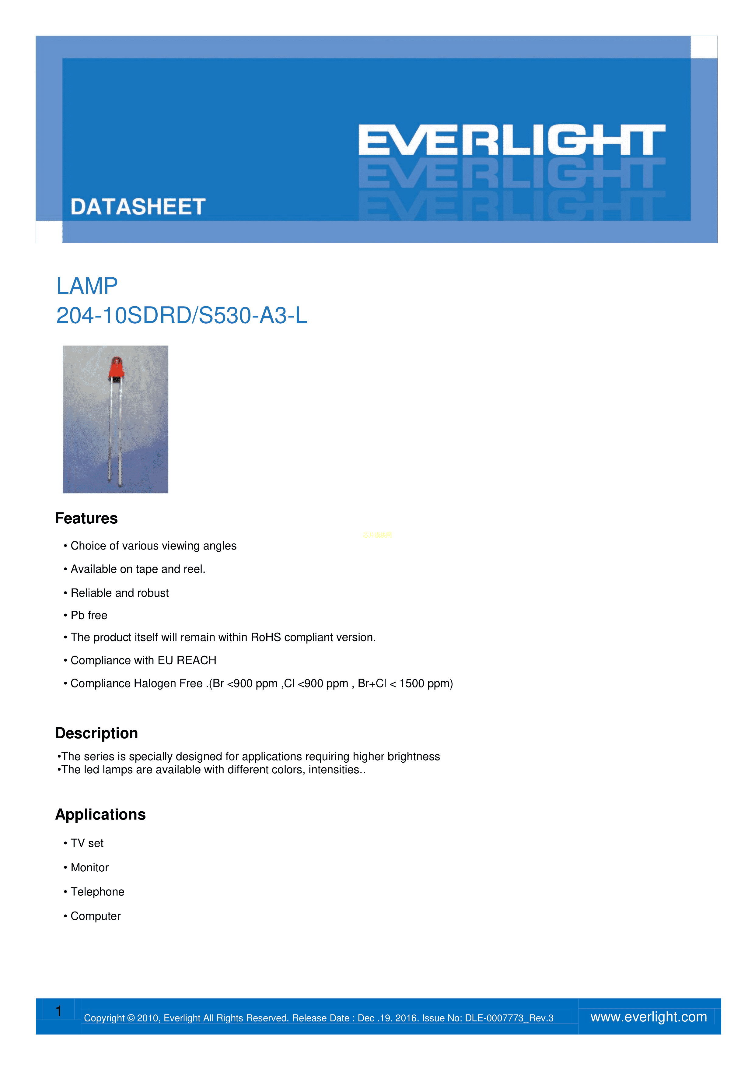 204-10SDRD-S530-A3-L数据手册插件封装EVERLIGHT(台湾亿光)PDF规格书,