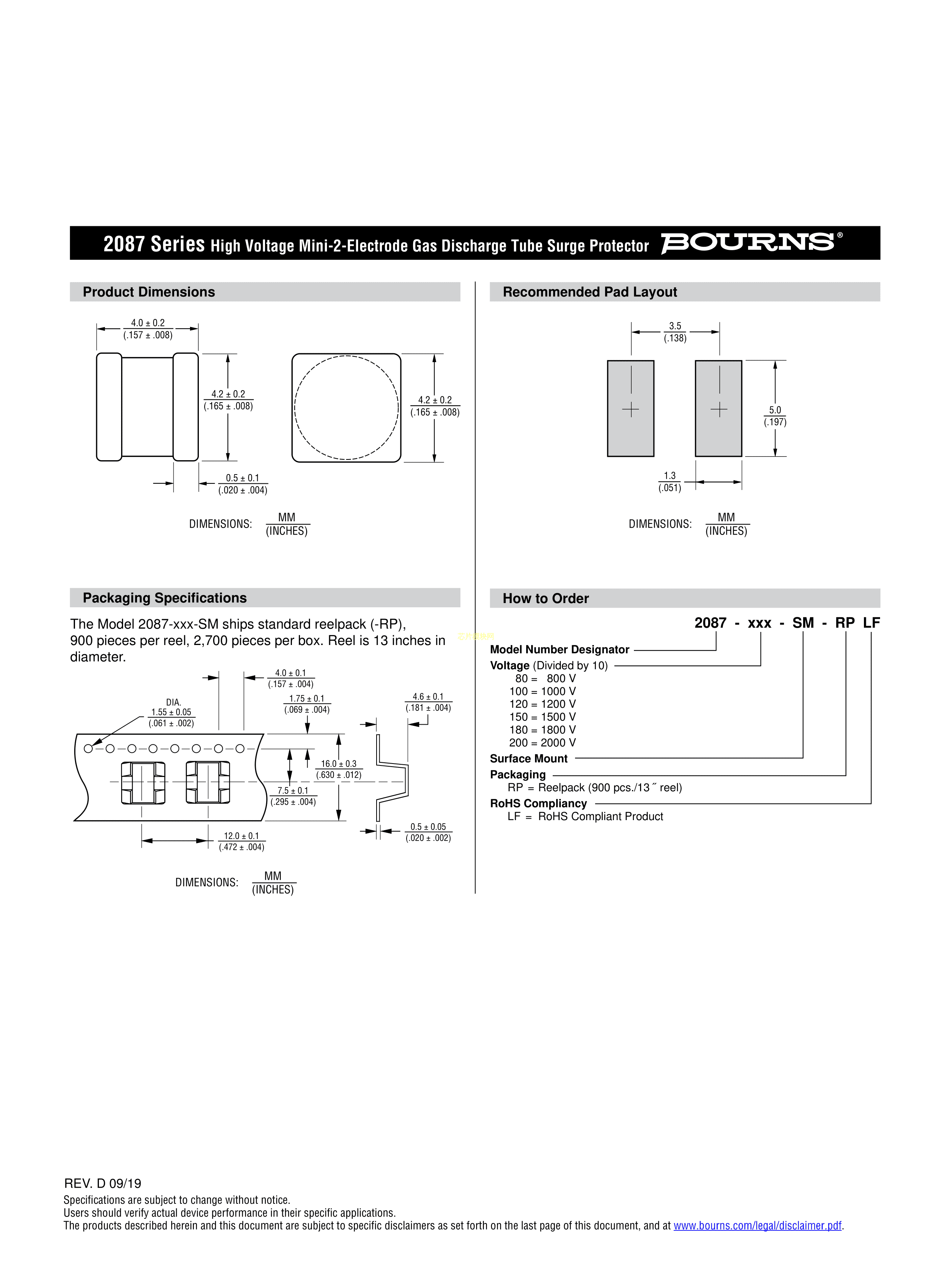 2087-200-SM-RPLF数据手册SMD封装BOURNSPDF规格书,中英文下载