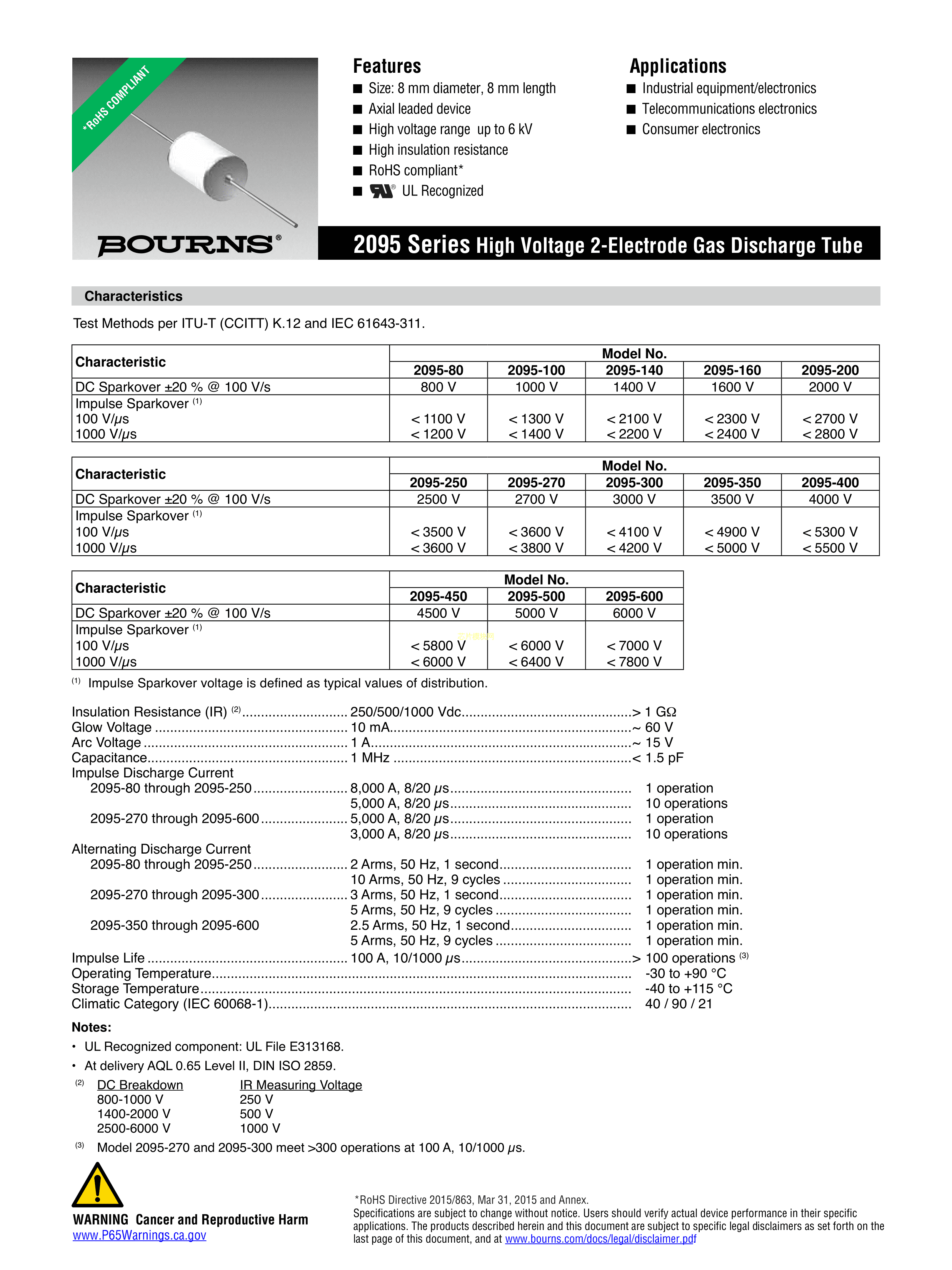 2095-450-BT1LF数据手册轴向引线封装BOURNSPDF规格书,中英文下载