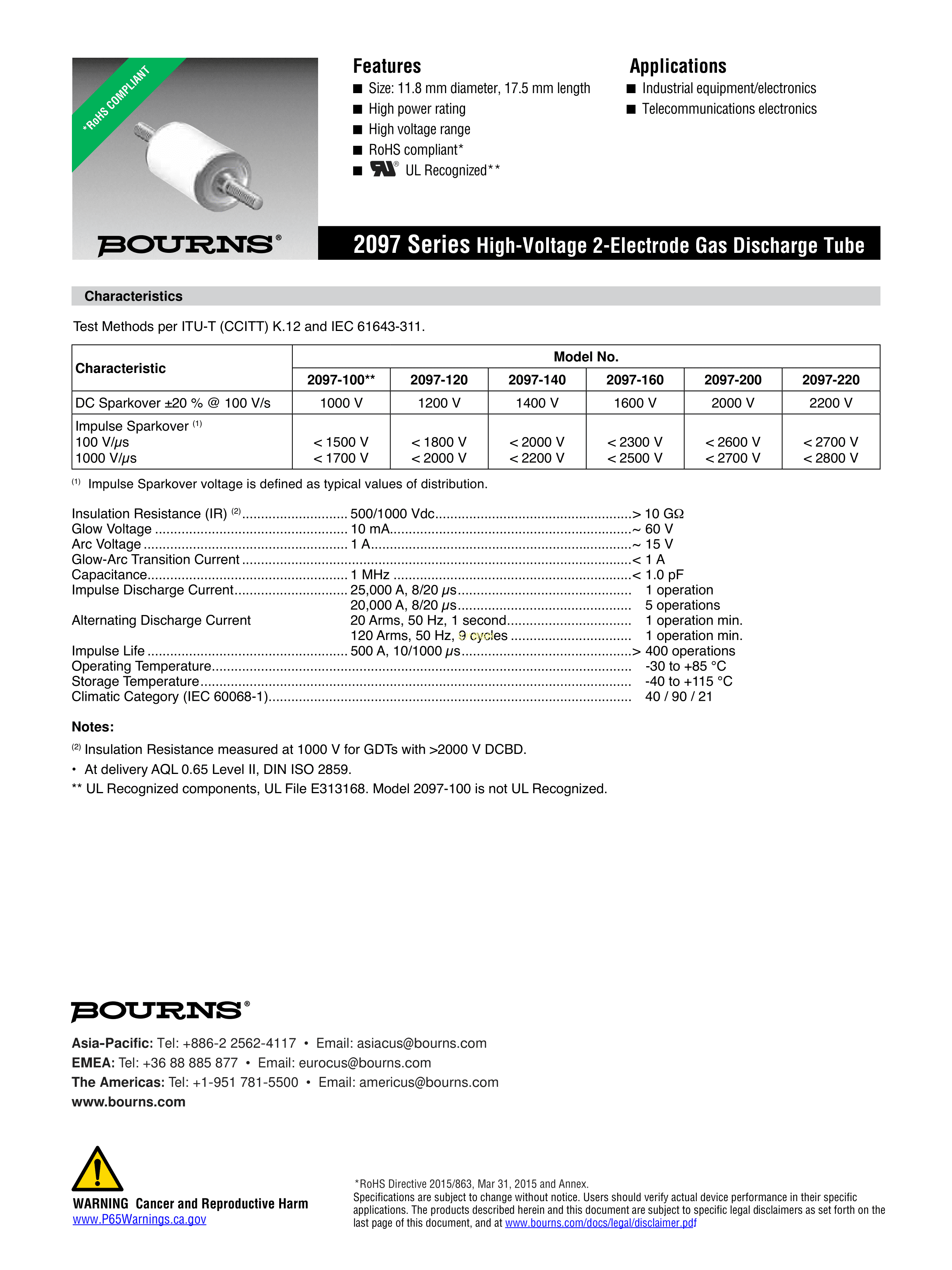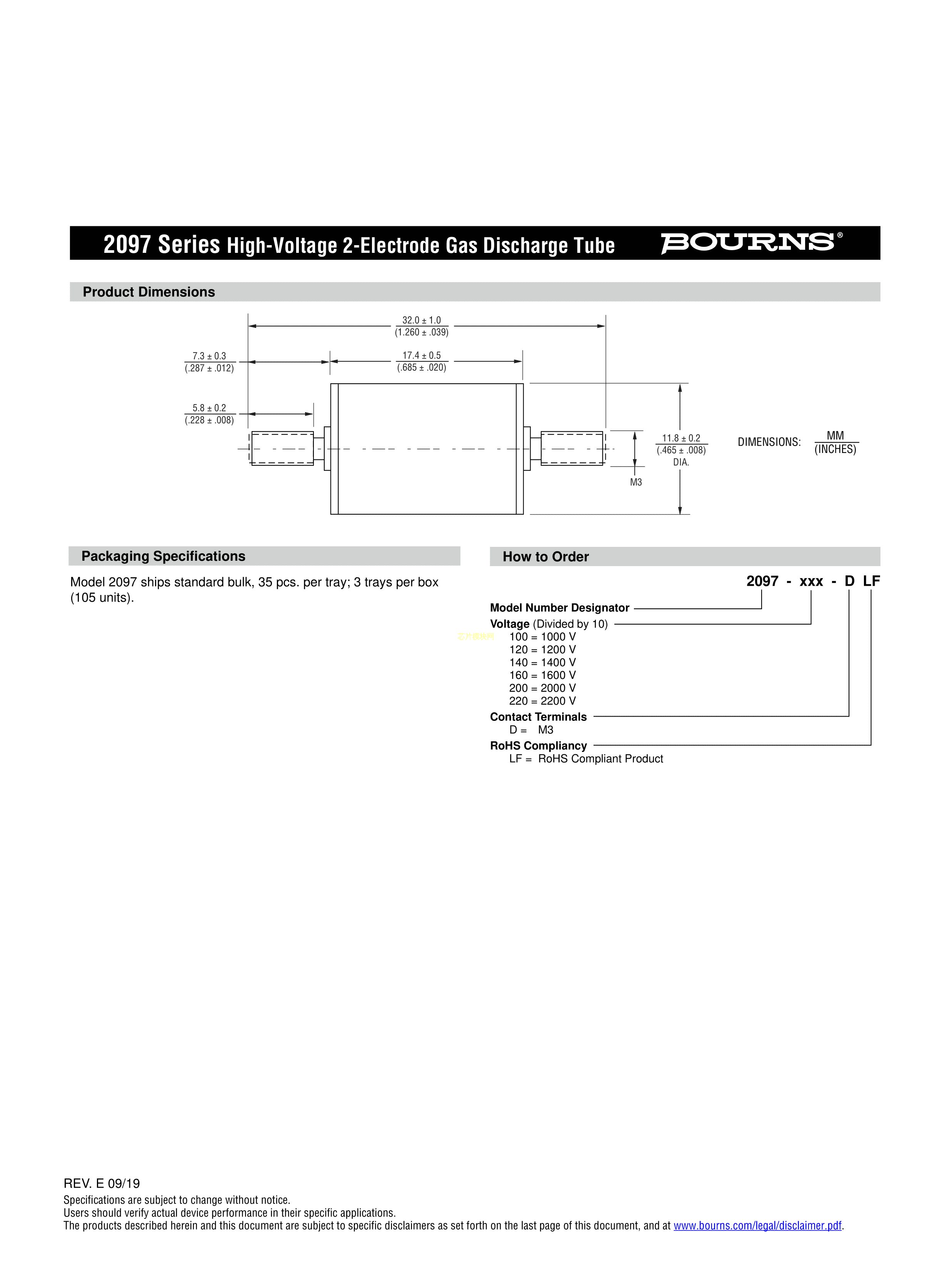 2097-120-DLF数据手册轴向引线封装BOURNSPDF规格书,中英文下载