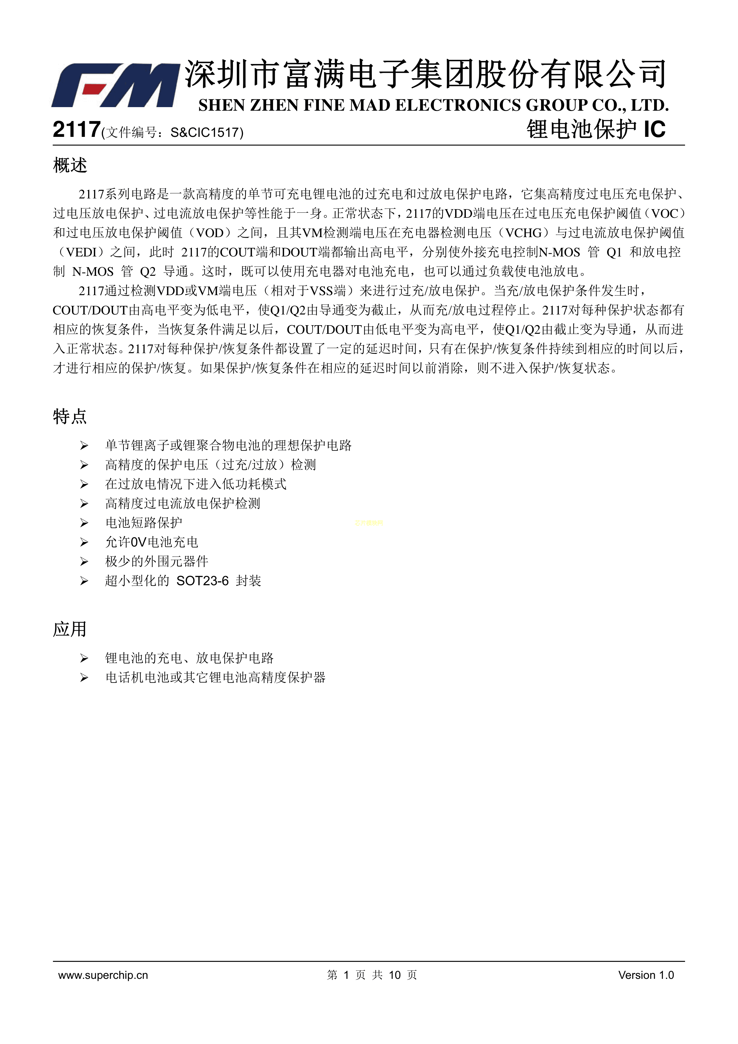 2117数据手册SOT-23-6封装FM(富满)PDF规格书,中英文下载