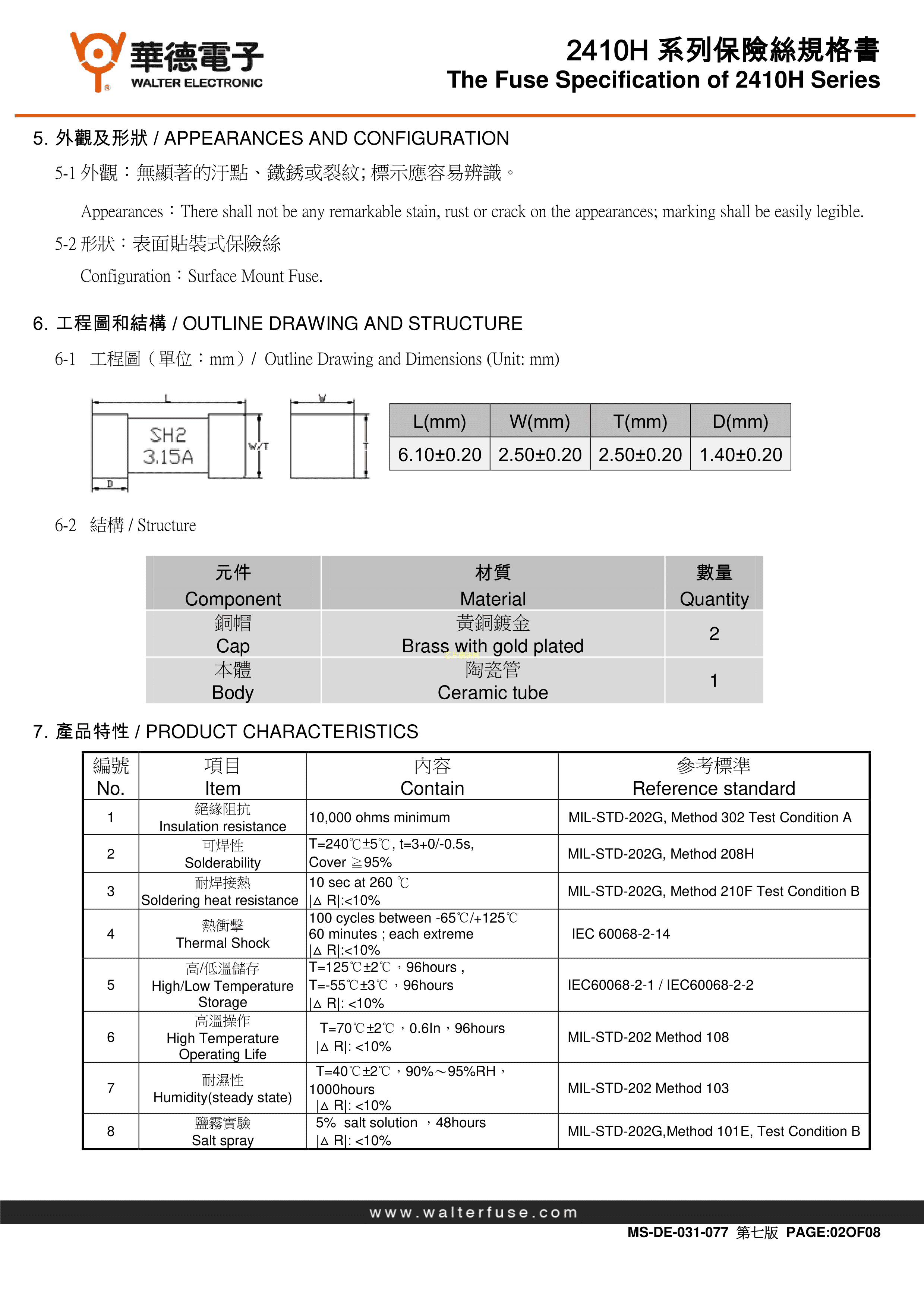 2410H5A250V数据手册SMD封装WALTER(华德)PDF规格书,中英文下载