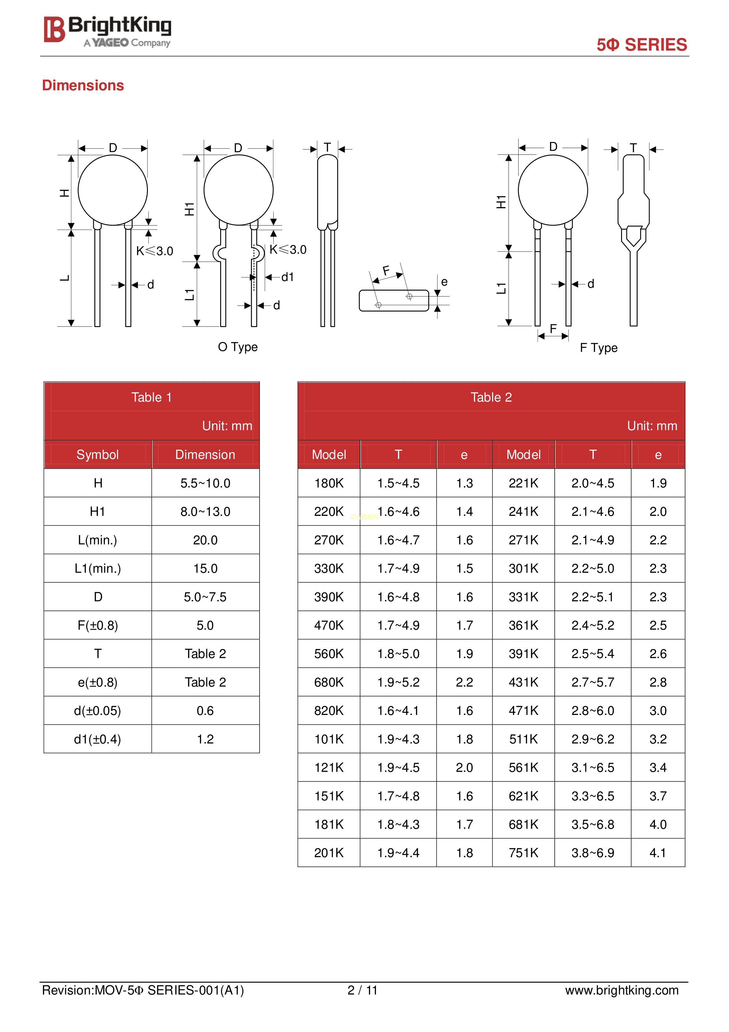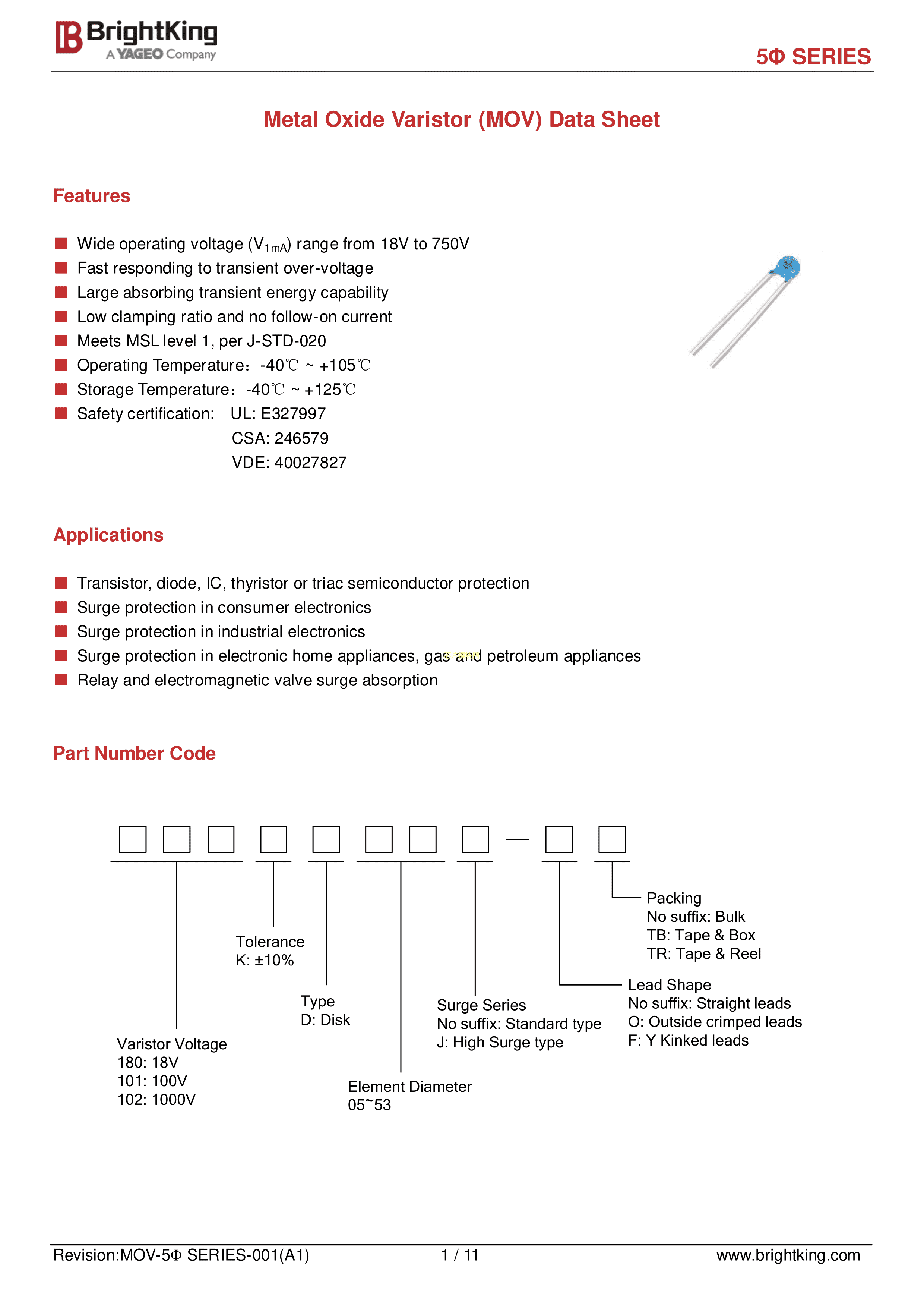 241KD05数据手册径向引线封装Brightking(台湾君耀)PDF规格书,中英文下载