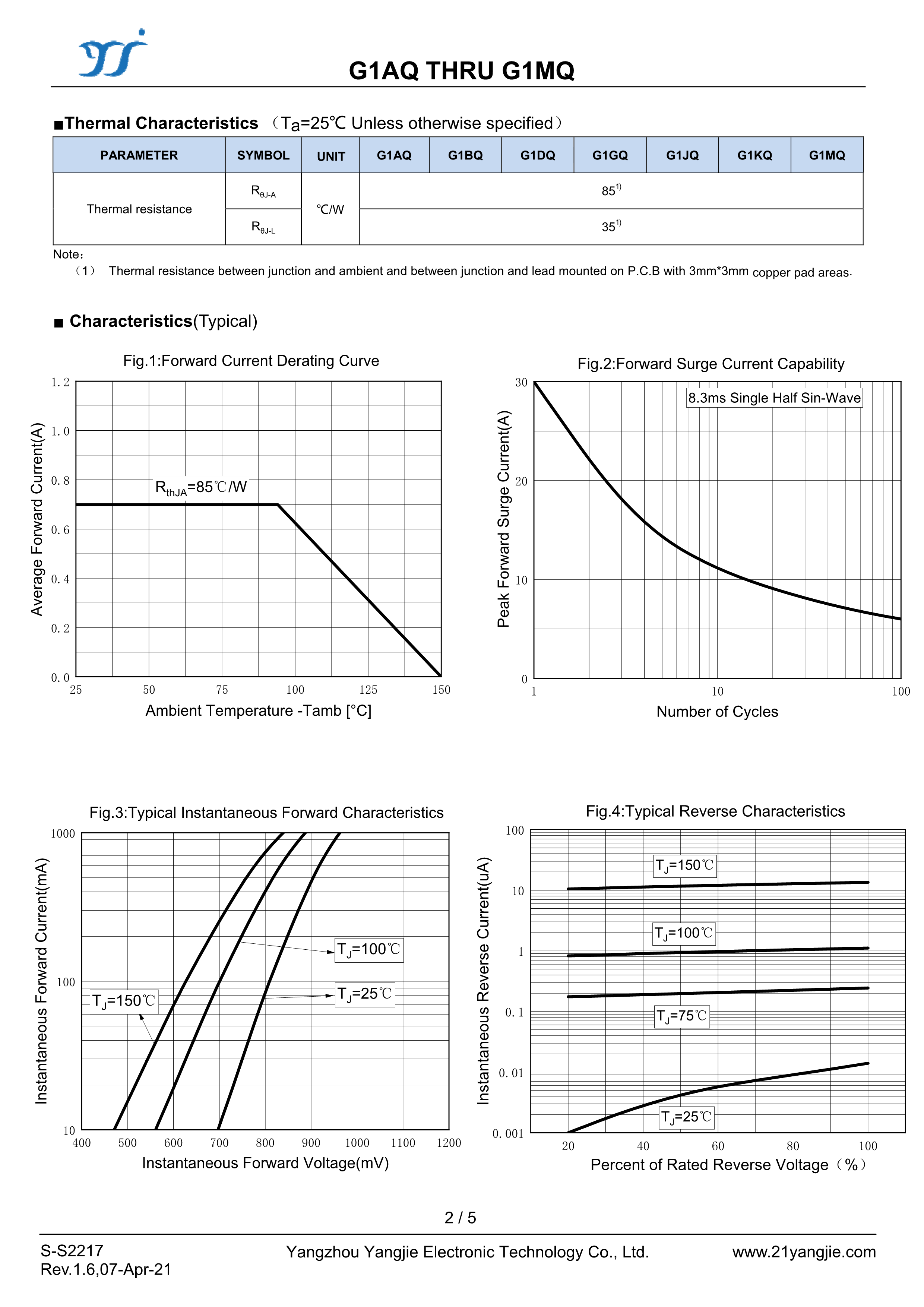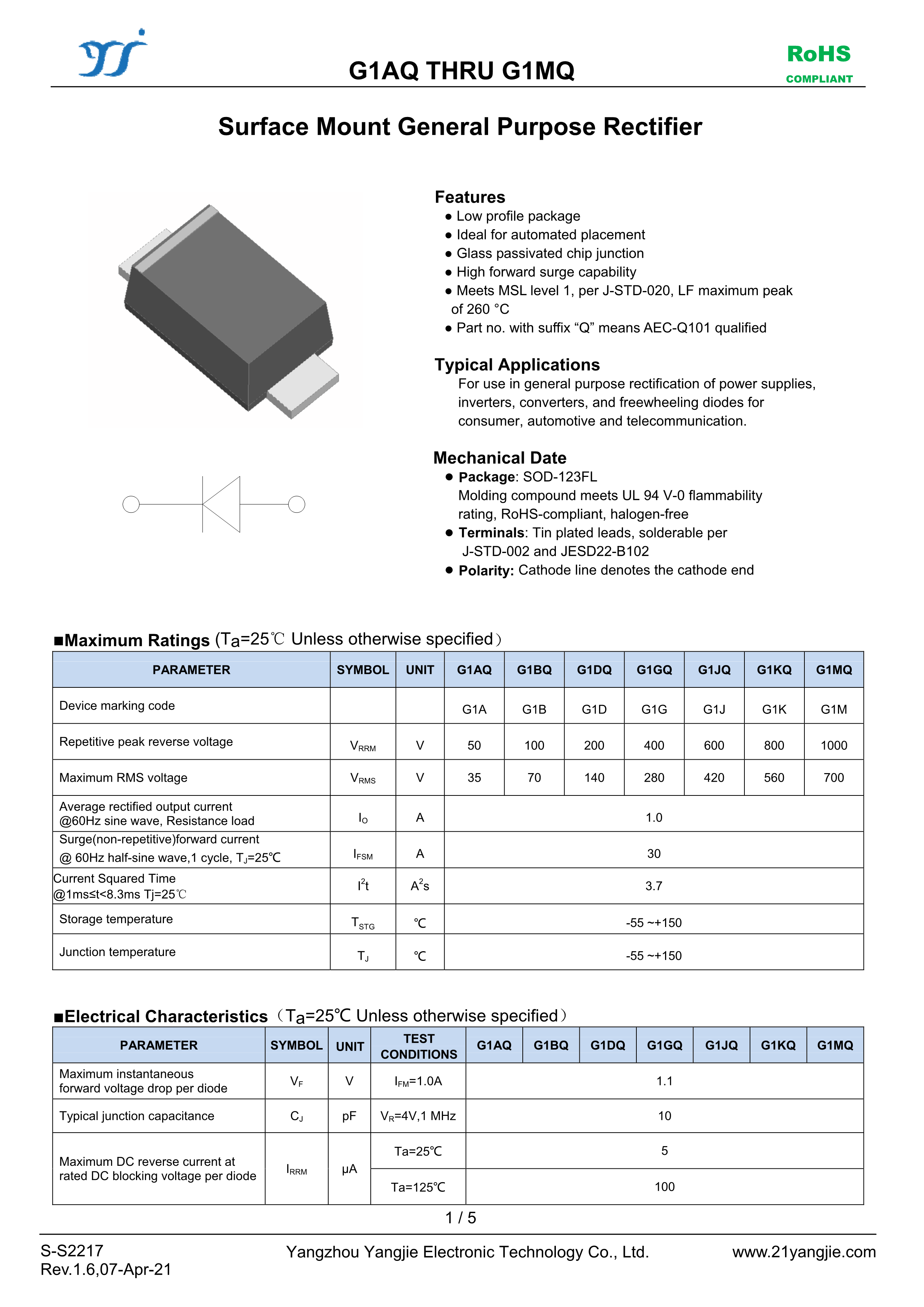G1GQ数据手册SOD-123FL封装YANGJIE(扬杰)PDF规格书,中英文下载
