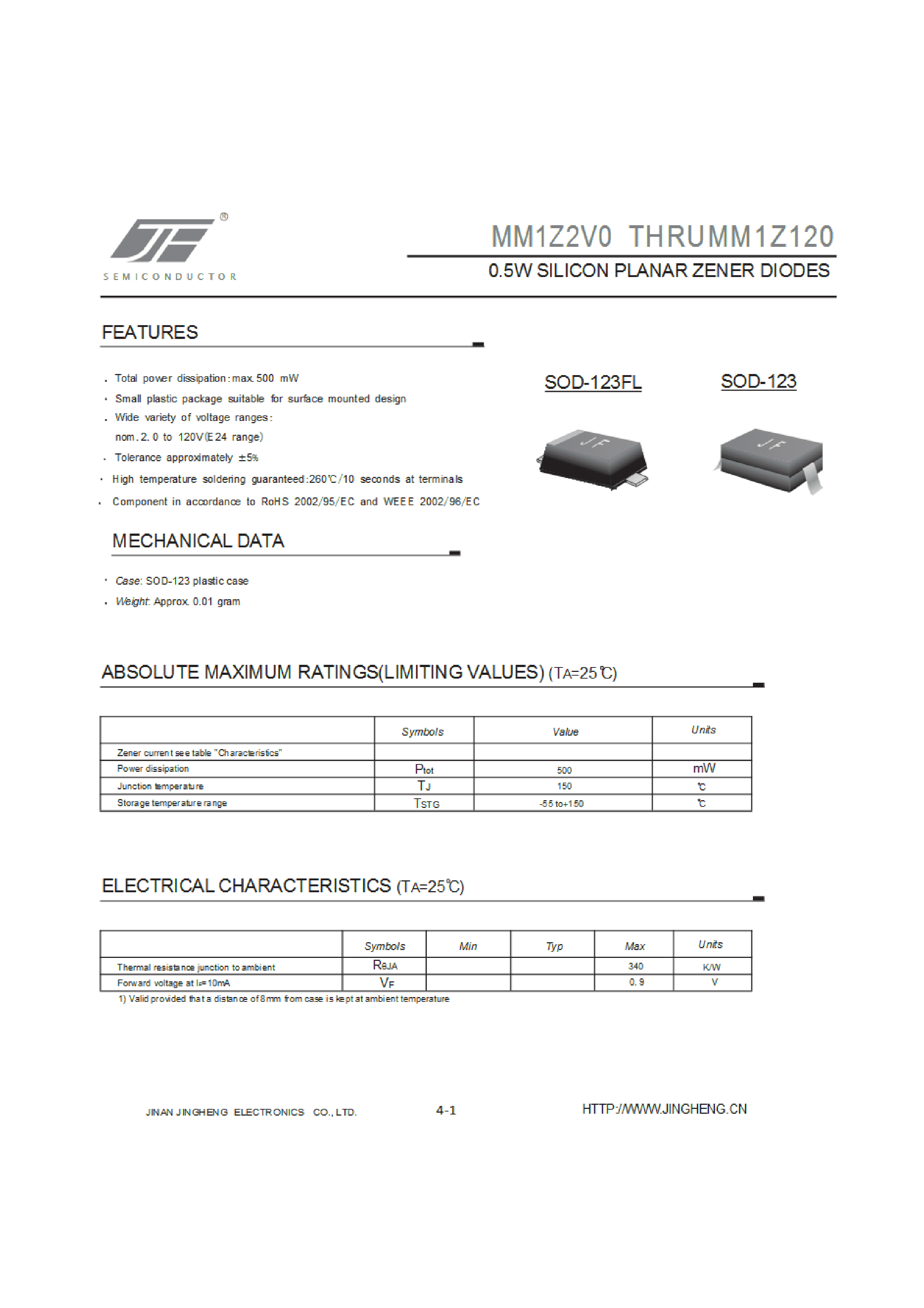 MM1Z33V数据手册SOD-123封装JF(吉福)PDF规格书,中英文下载