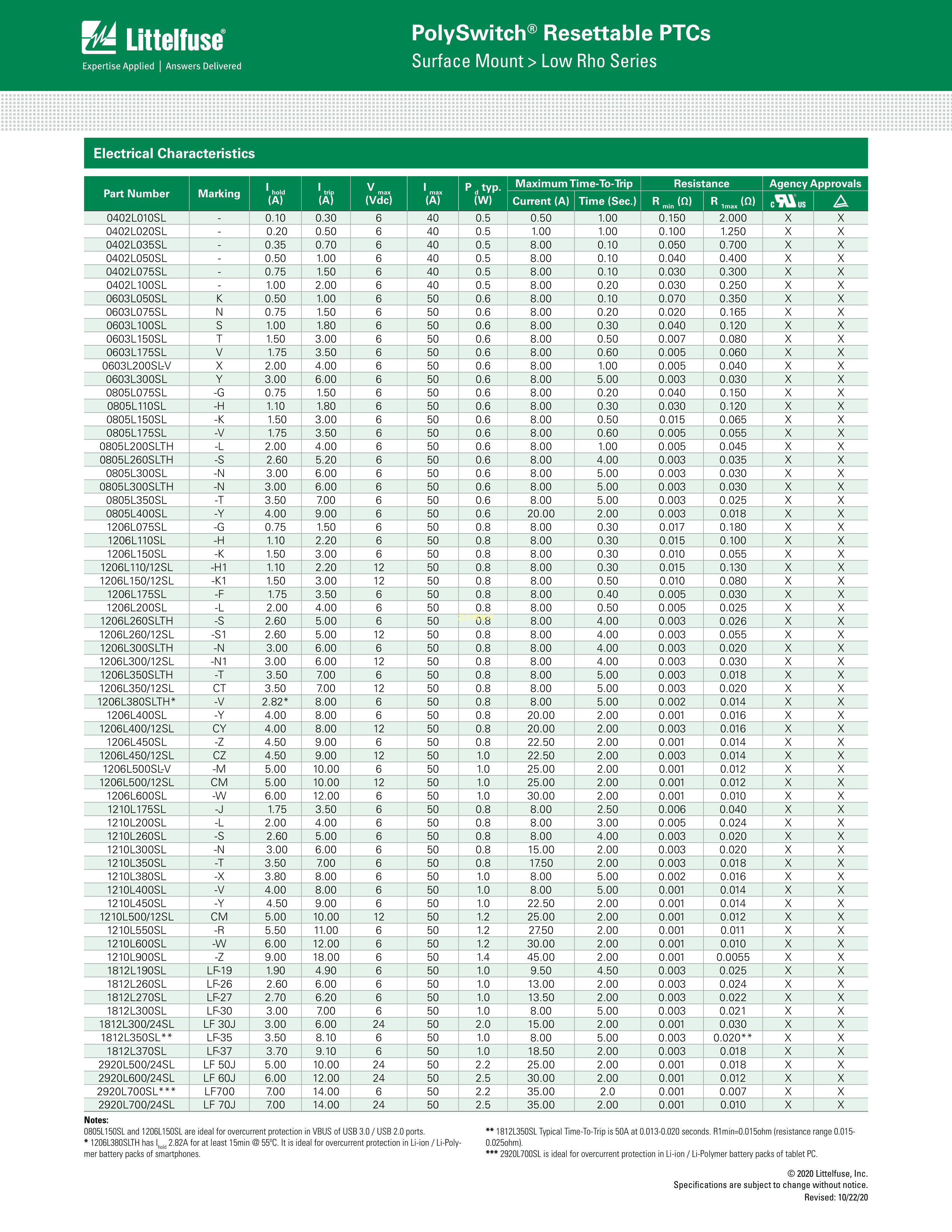 2920L700-24SLER数据手册2920封装Littelfuse(美国力特)PDF规格书,中英文下载