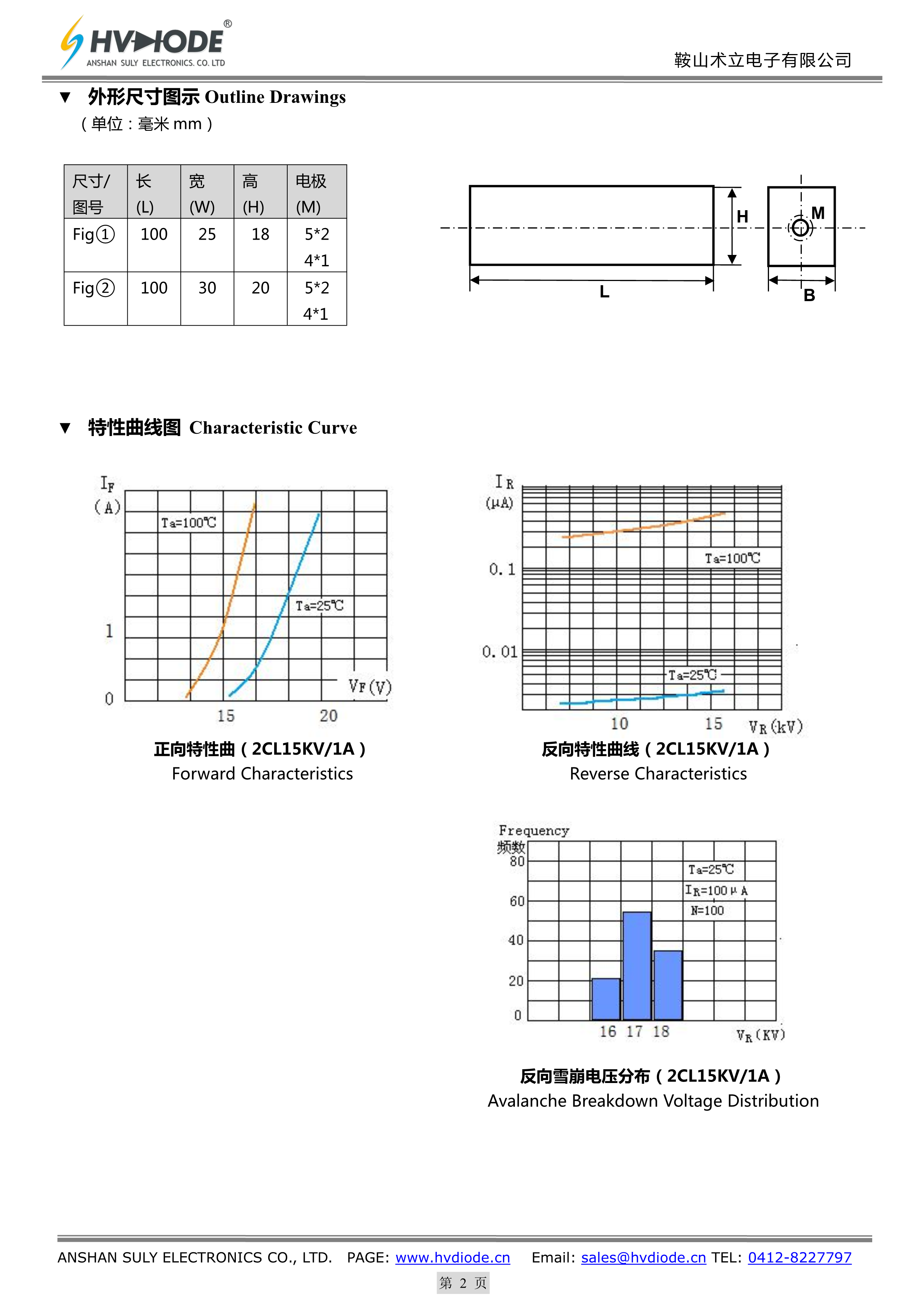 2CL15KV-1A数据手册100x25x18mm封装HVDIODE(鞍山术立)PDF规格书,中英文