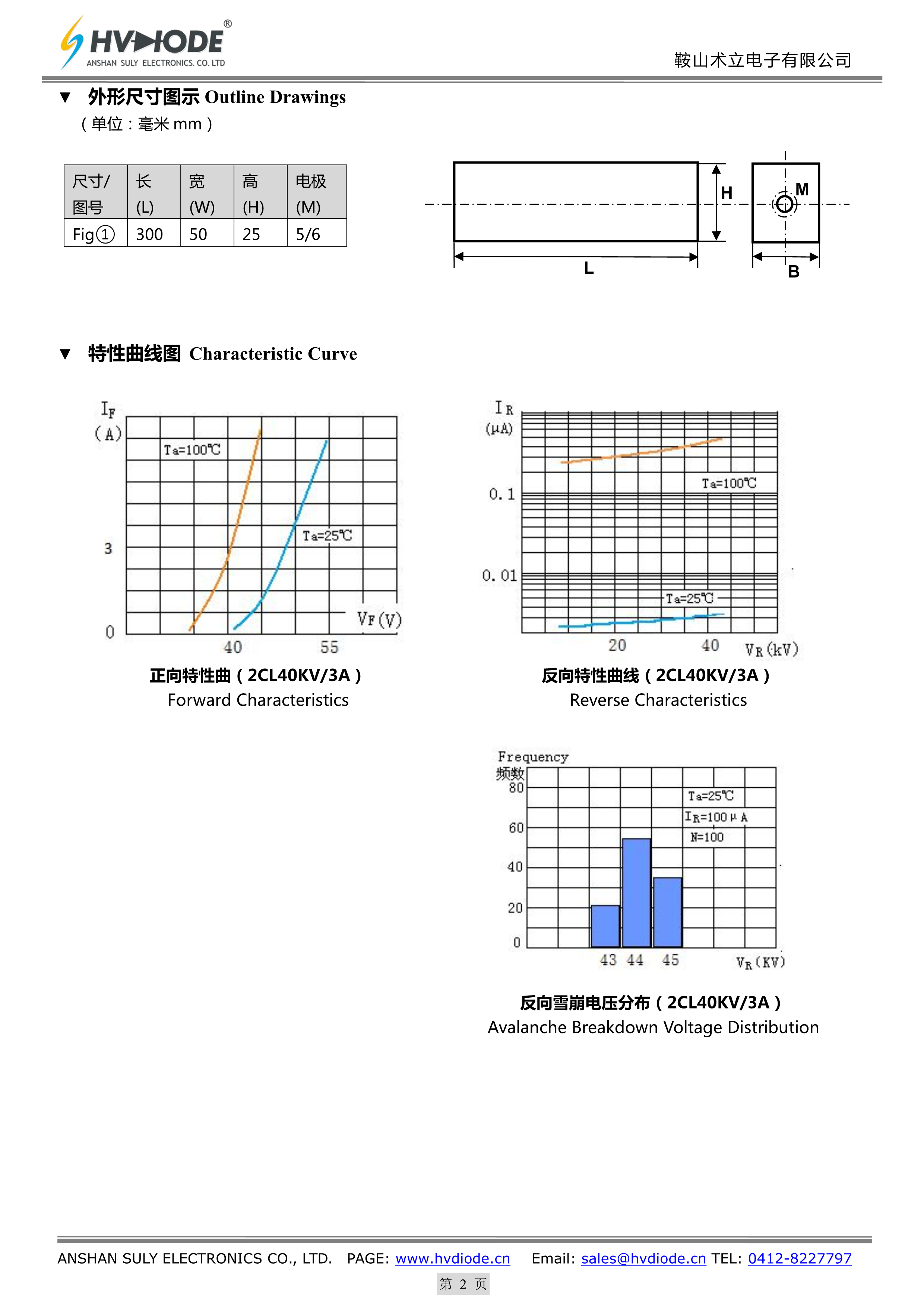 2CL40KV-3A数据手册300x50x25mmM6封装HVDIODE(鞍山术立)PDF规格书,中