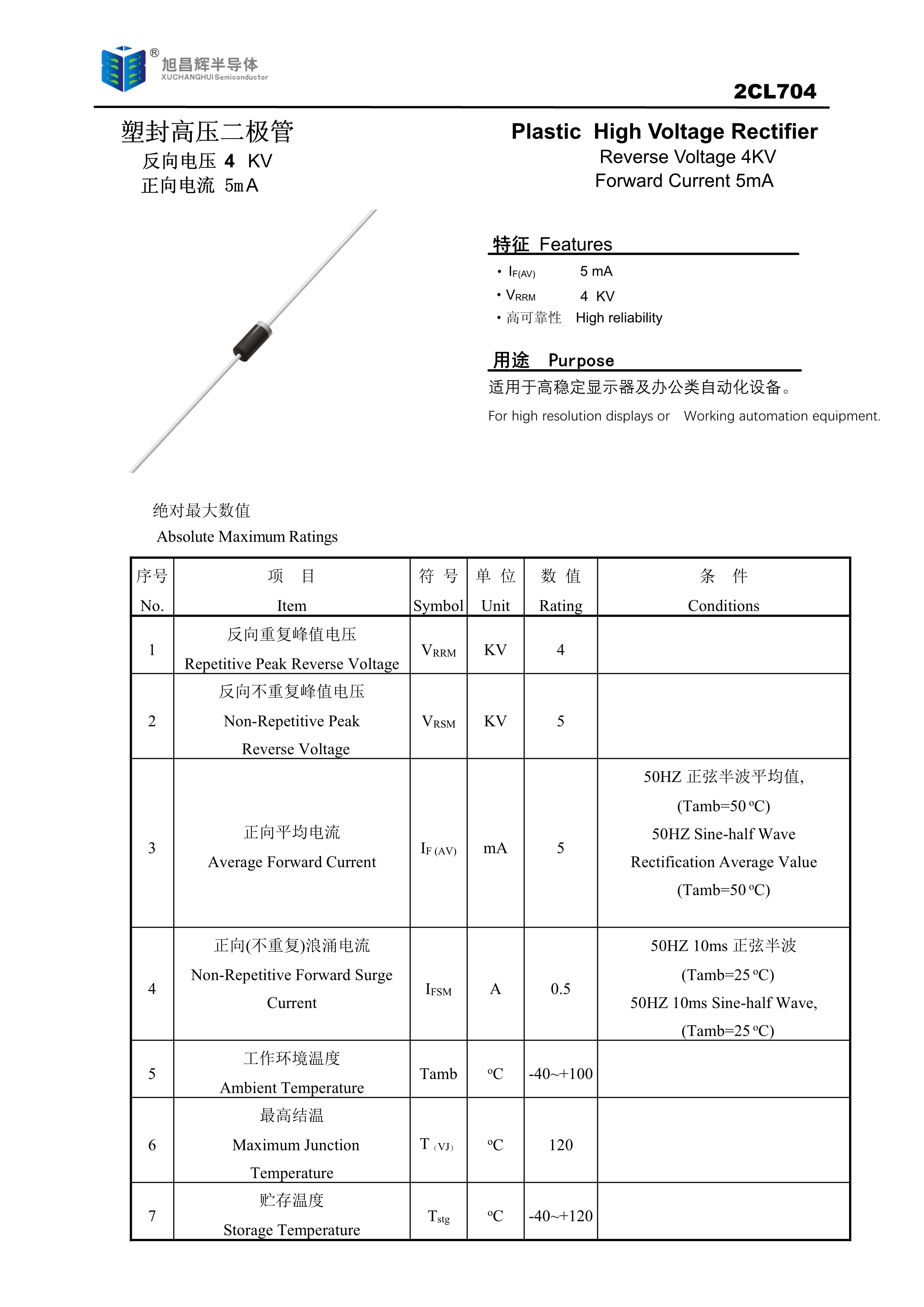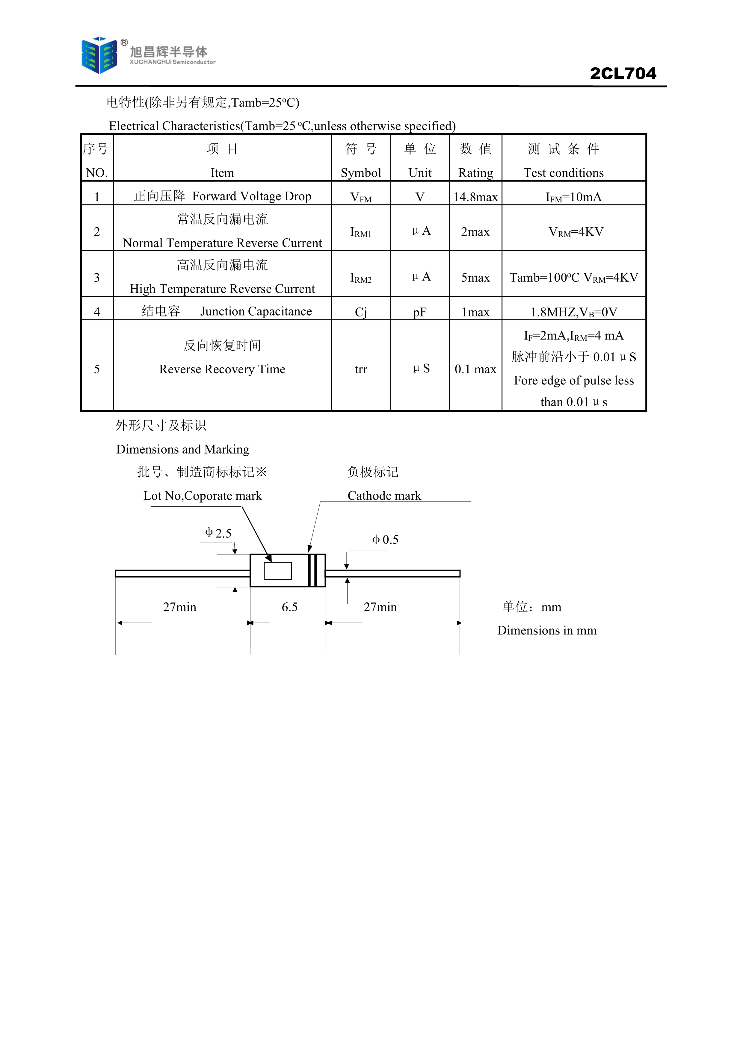 2CL704数据手册轴线引线封装XCH(旭昌辉)PDF规格书,中英文下载