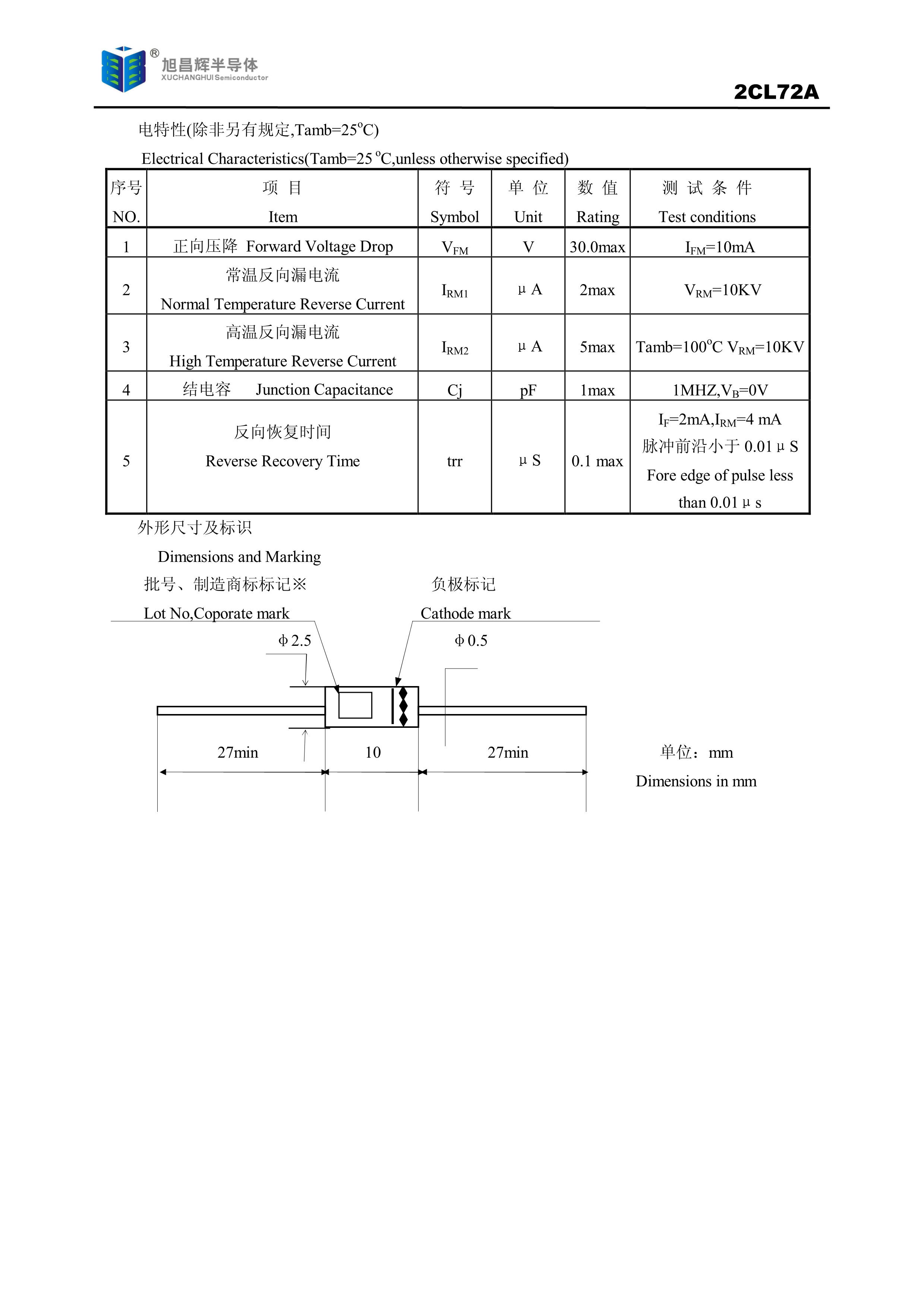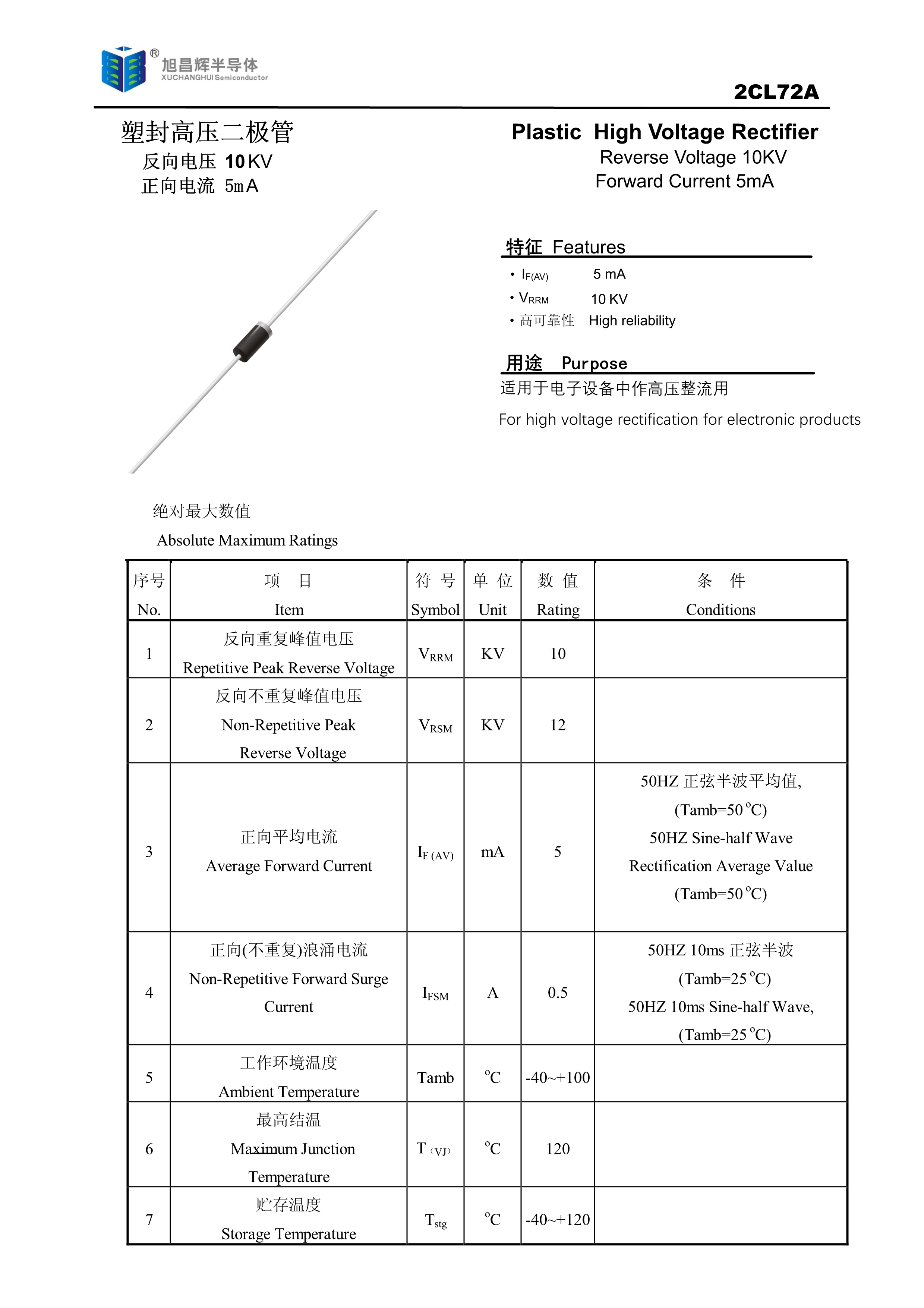 2CL72A数据手册轴线引线封装XCH(旭昌辉)PDF规格书,中英文下载