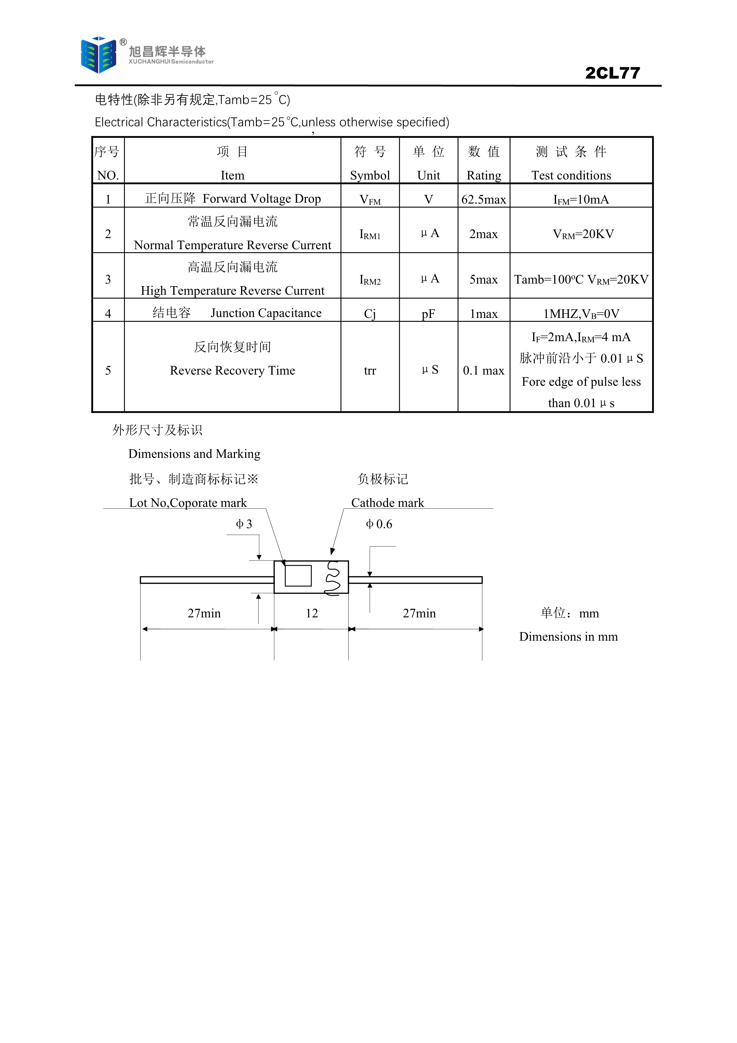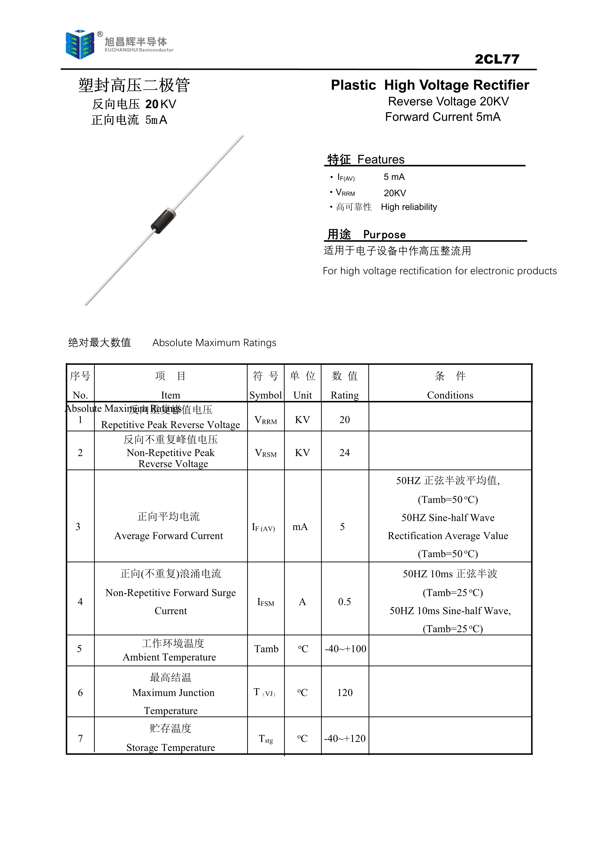2CL77数据手册轴线引线封装XCH(旭昌辉)PDF规格书,中英文下载