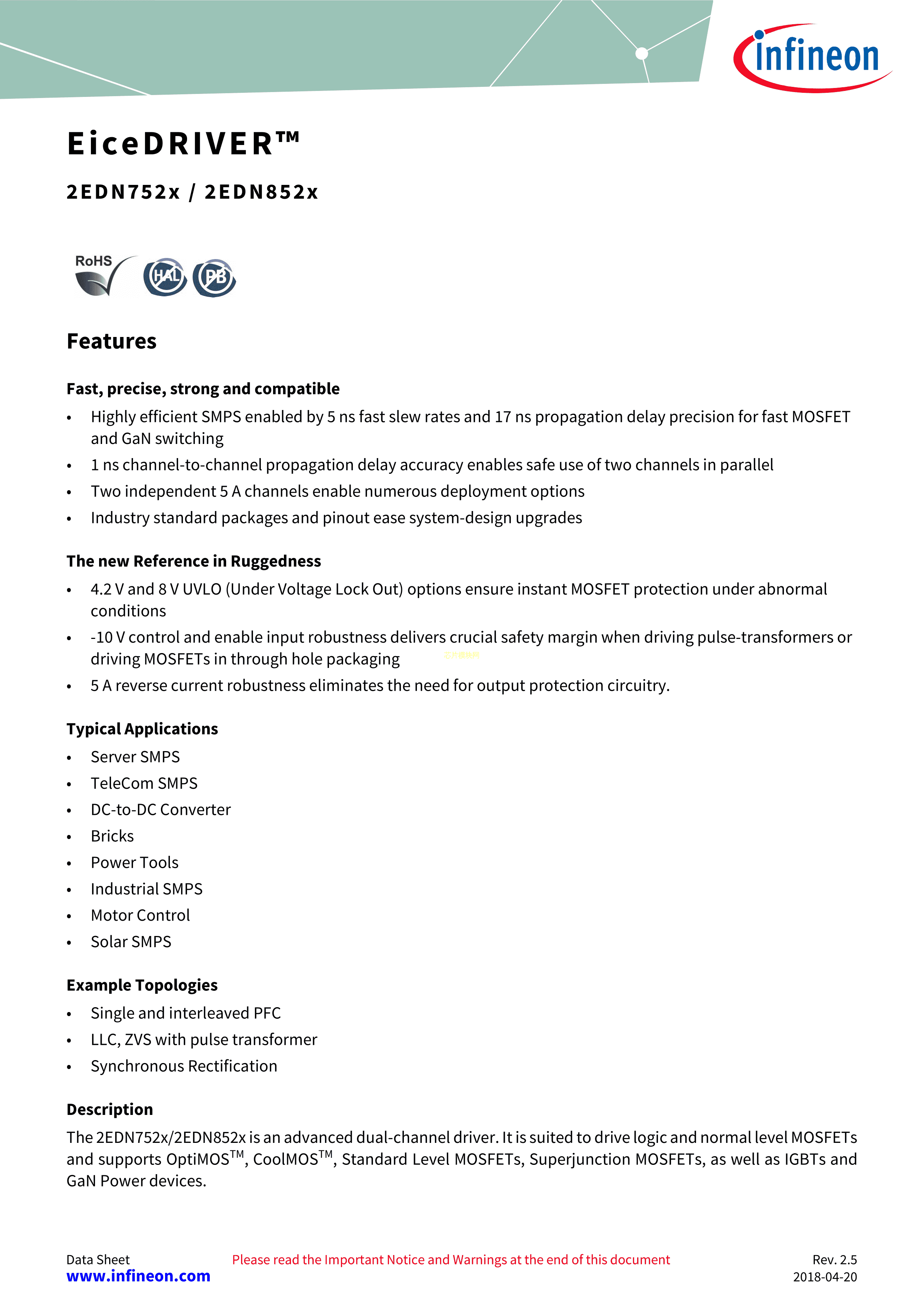 2EDN8523F数据手册PG-DSO-8-60封装Infineon(英飞凌)PDF规格书,中英文下