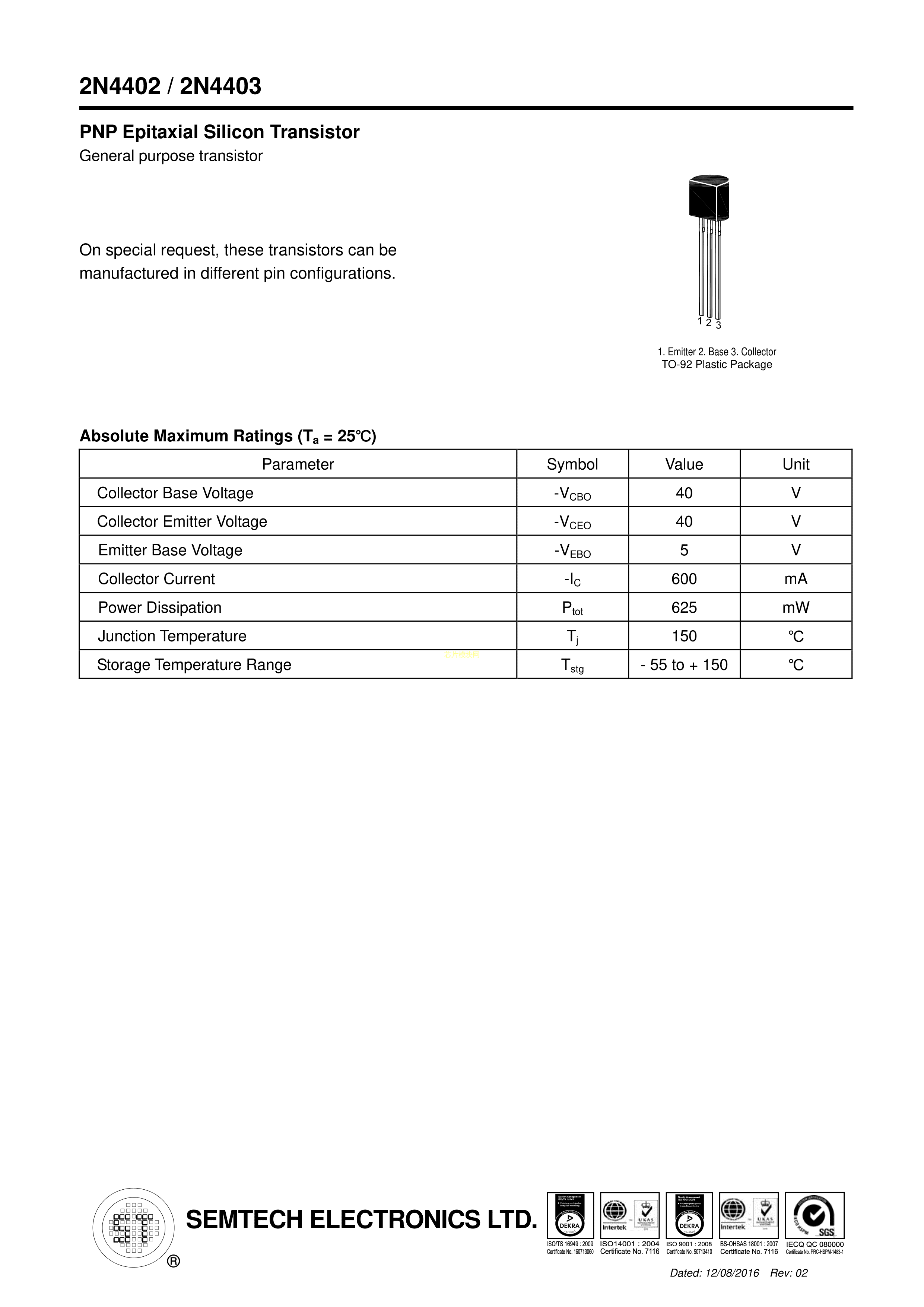 2N4403数据手册TO-92(TO-92-3)封装ST(先科)PDF规格书,中英文下载
