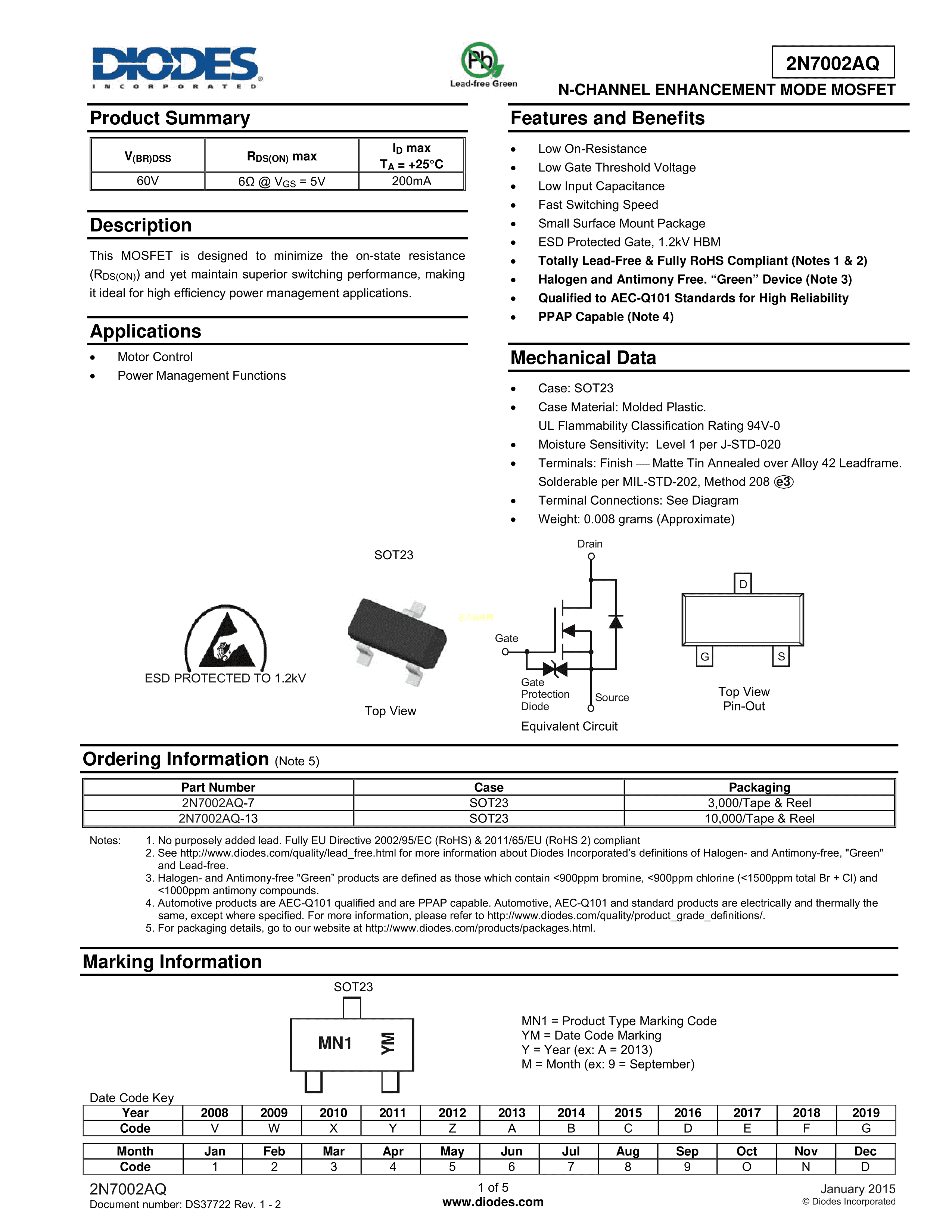 2N7002AQ-7数据手册SOT-23封装DIODES(美台)PDF规格书,中英文下载
