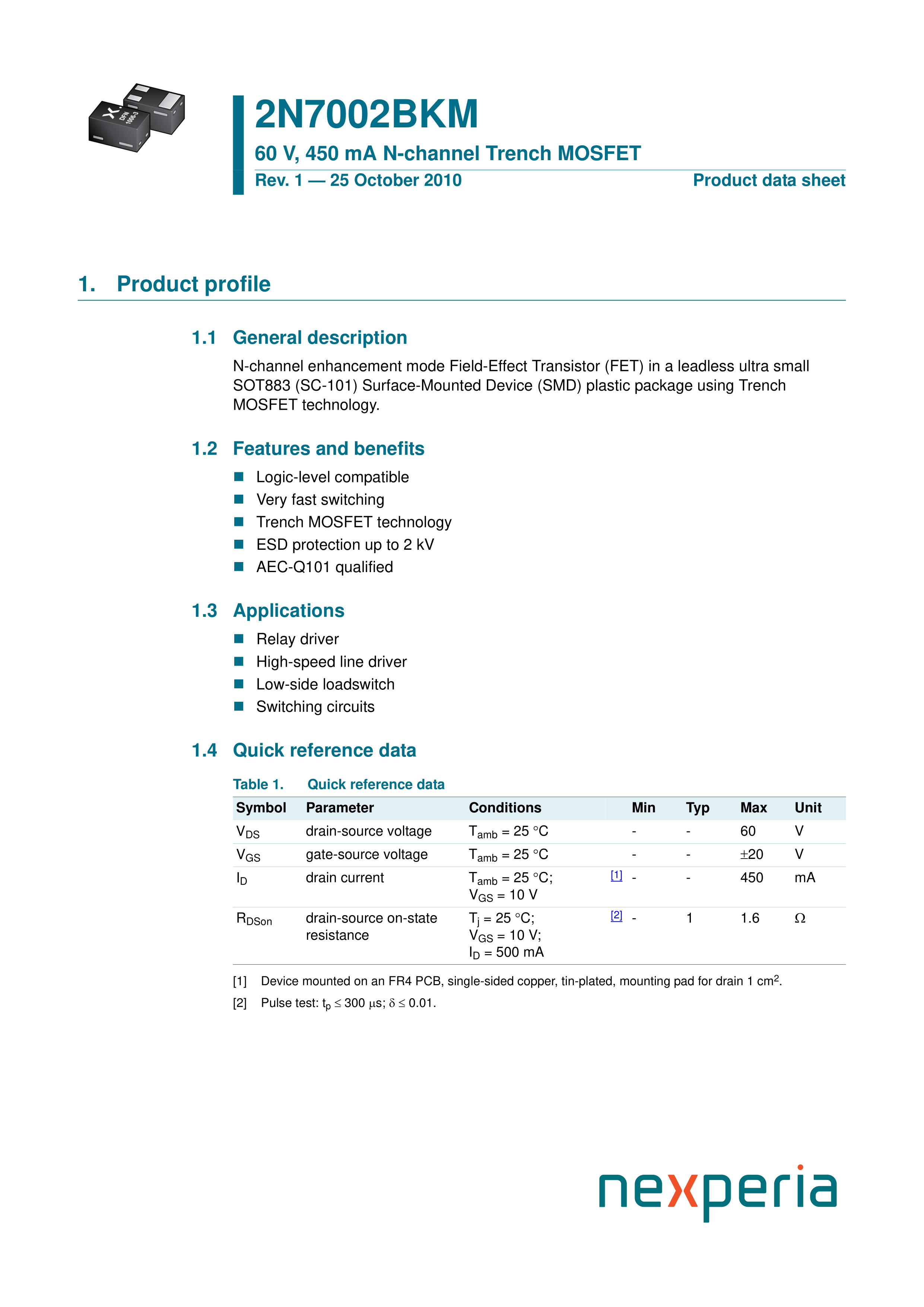 2N7002BKM315数据手册SOT-883封装Nexperia(安世)PDF规格书,中英文下载