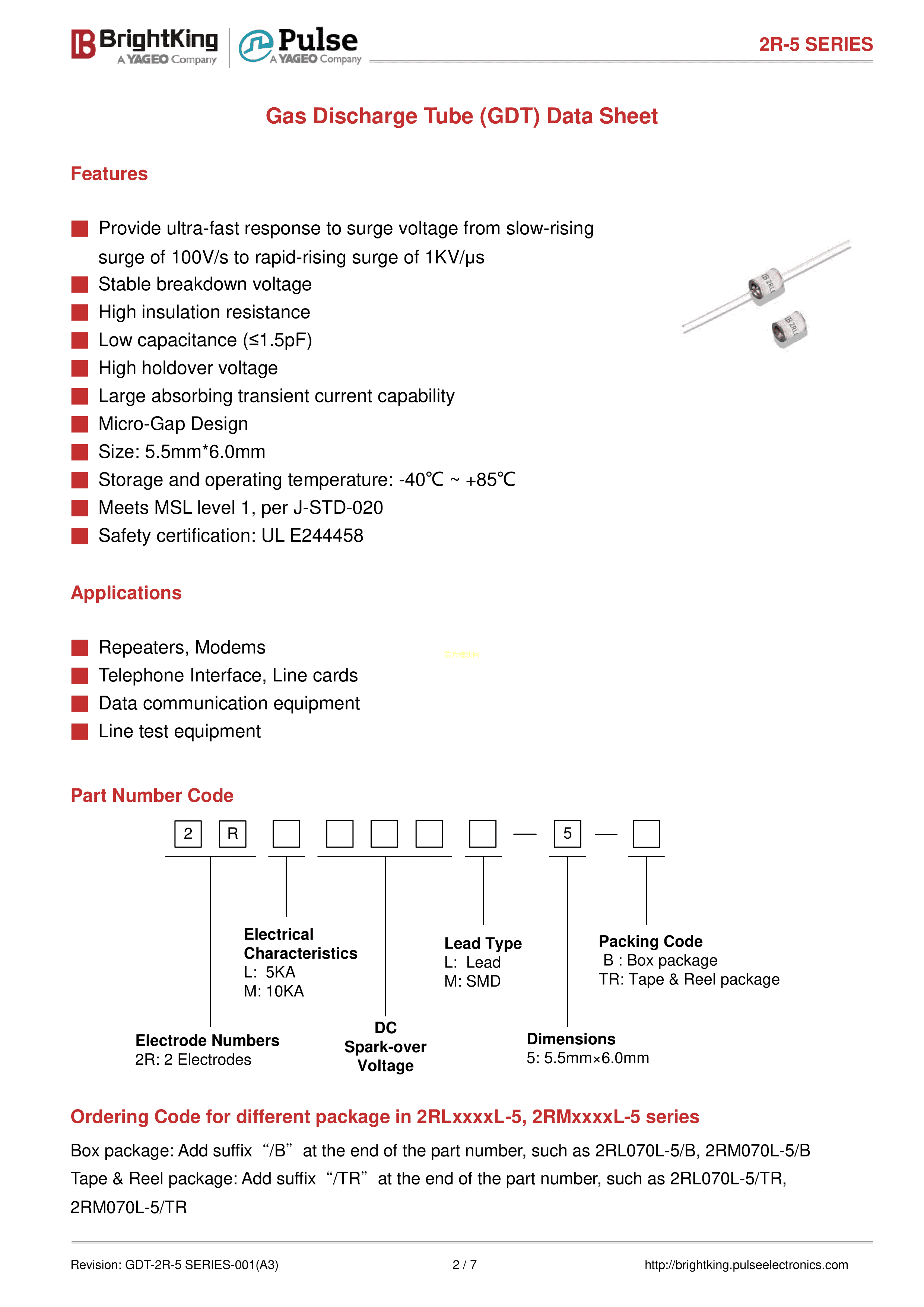 2RL470L-5-K1数据手册径向引线封装Brightking(台湾君耀)PDF规格书,中英文下载