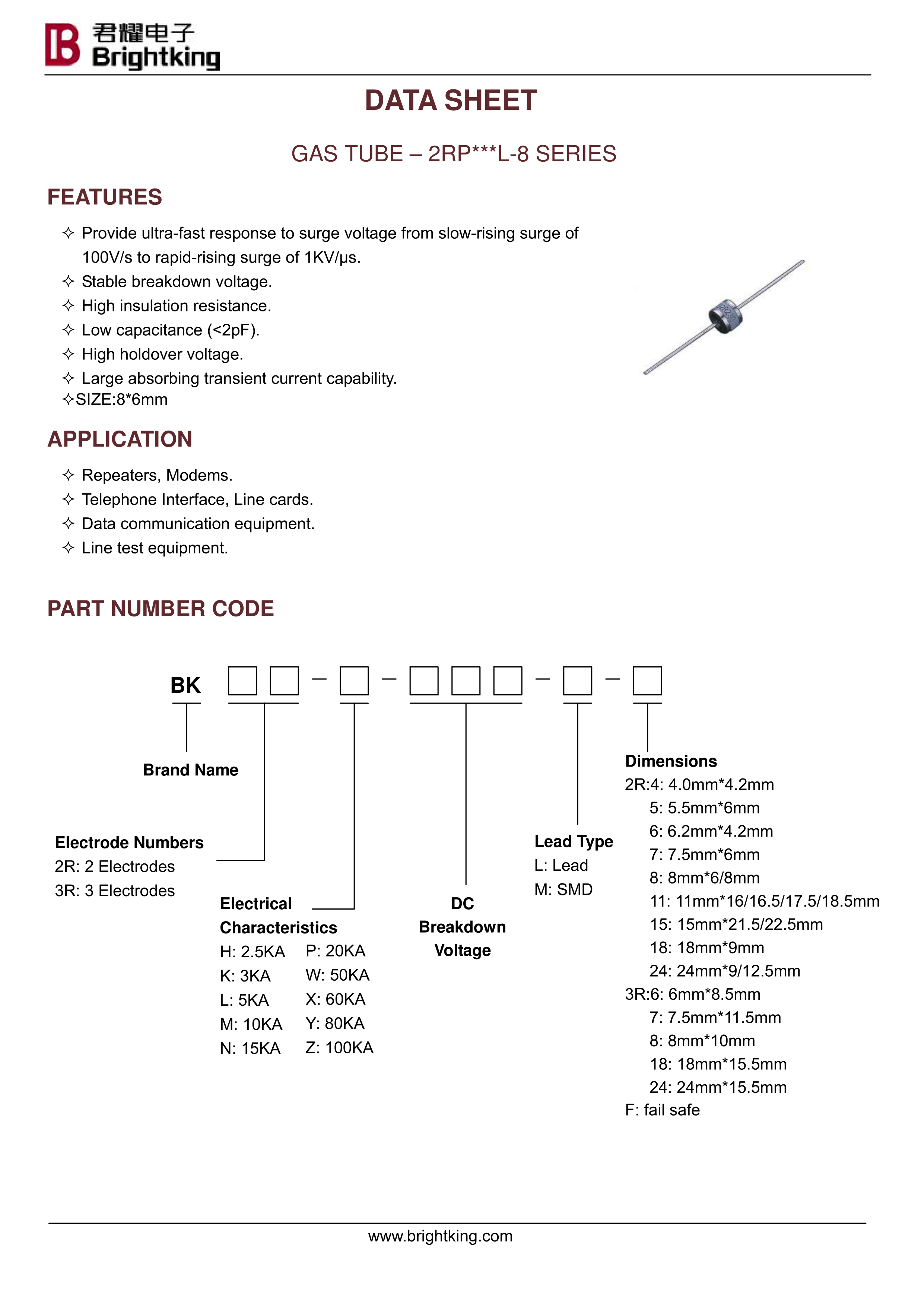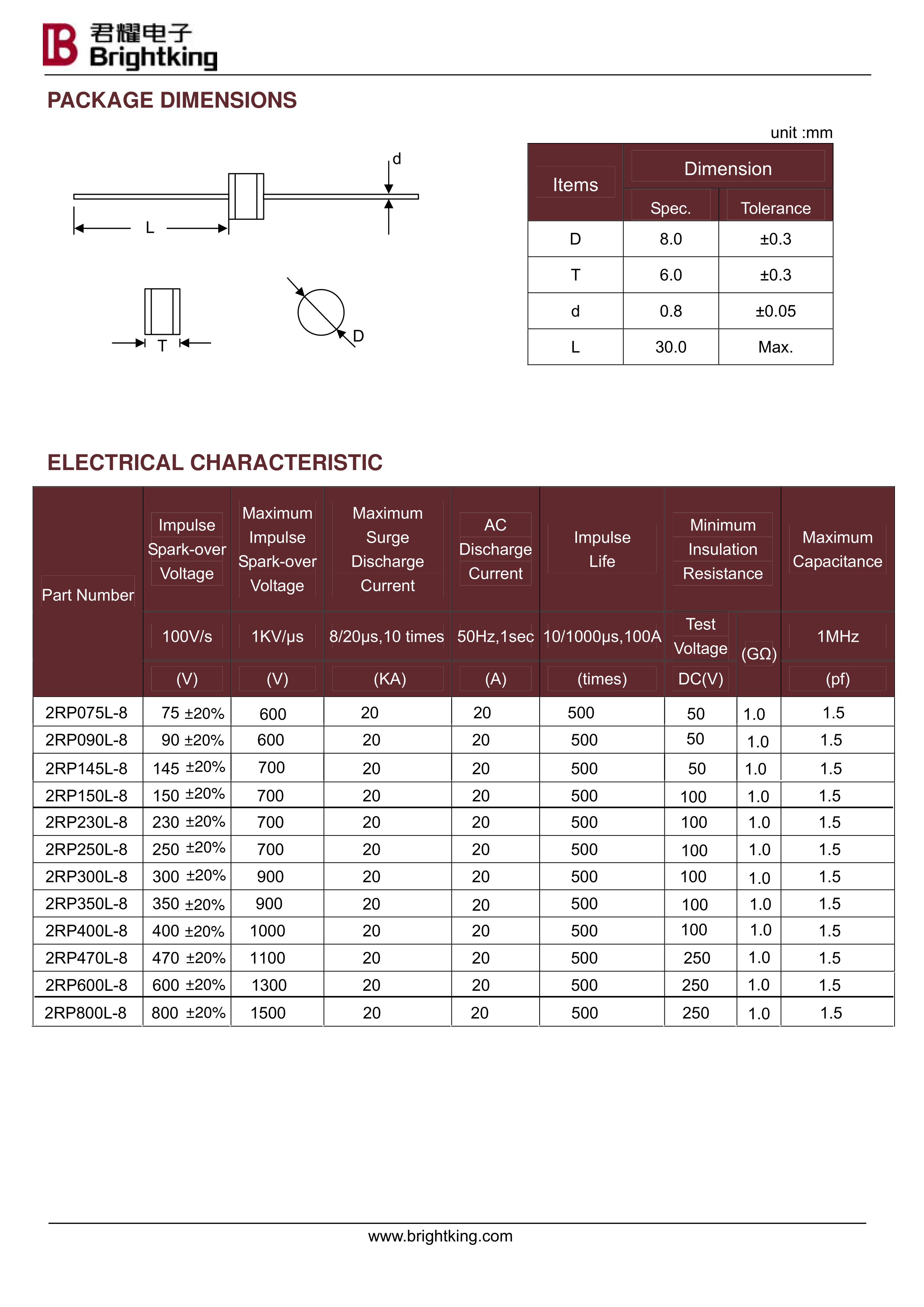 2RP600L-8数据手册轴向引线封装Brightking(台湾君耀)PDF规格书,中英文下载