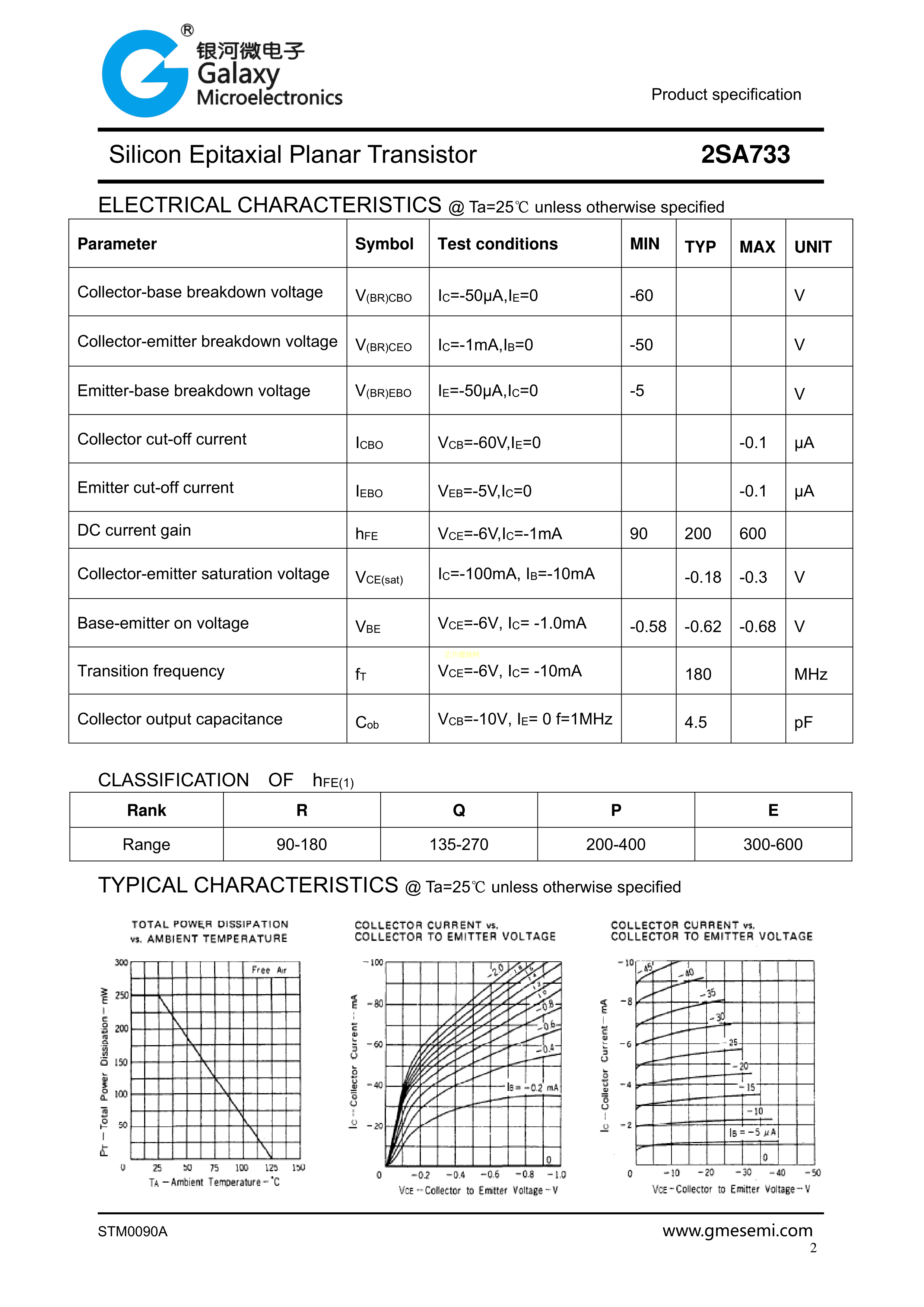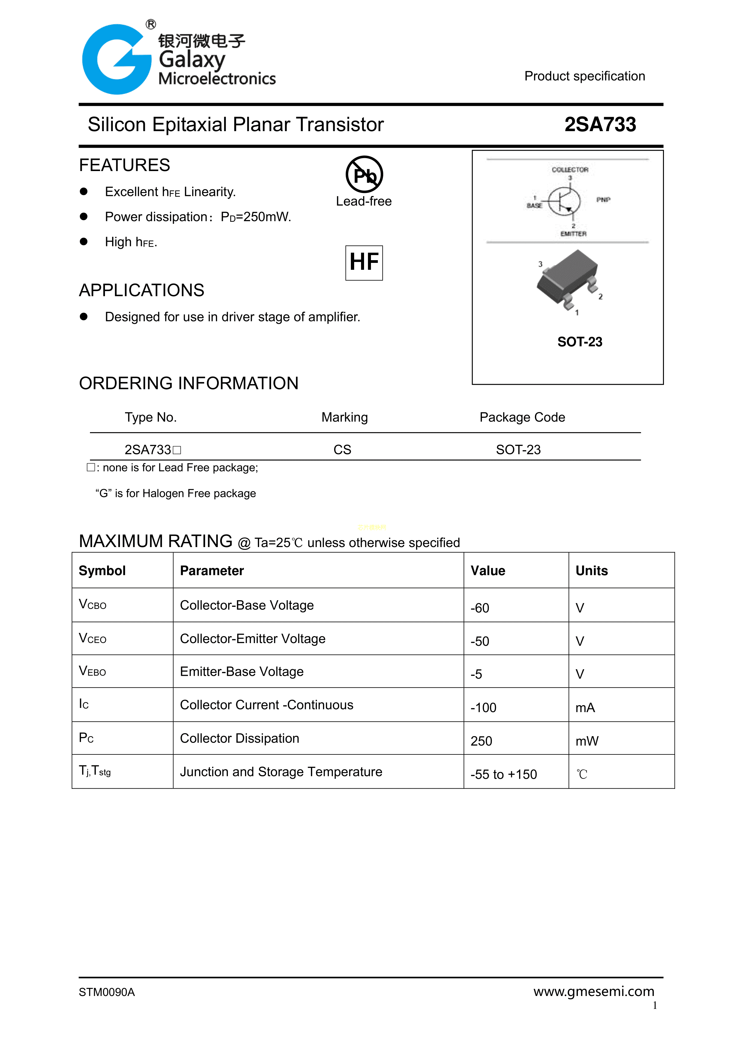 2SA733G-CS数据手册SOT-23封装银河微电子PDF规格书,中英文下载