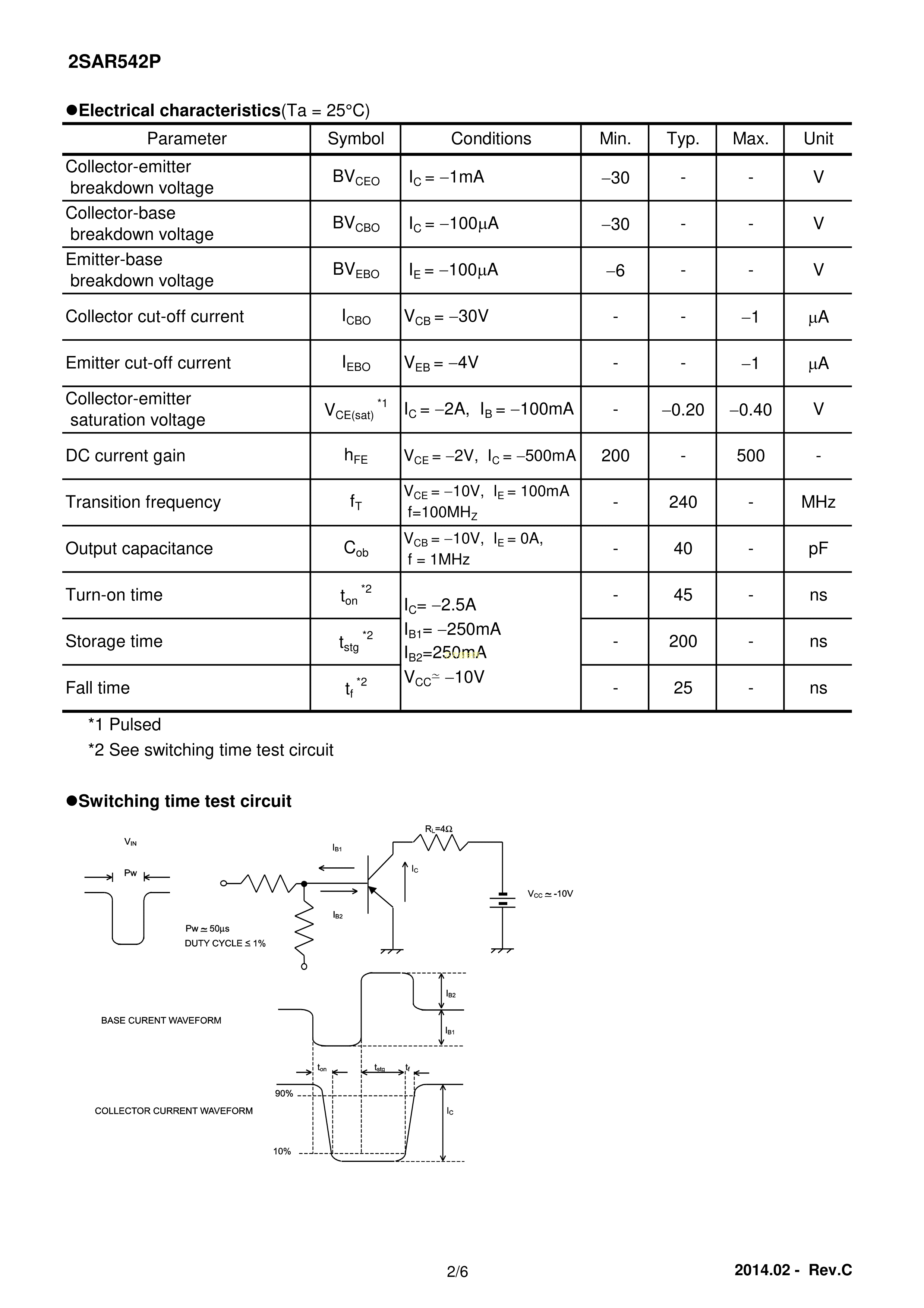 2SAR542PT100数据手册SOT-89封装ROHM(罗姆)PDF规格书,中英文下载