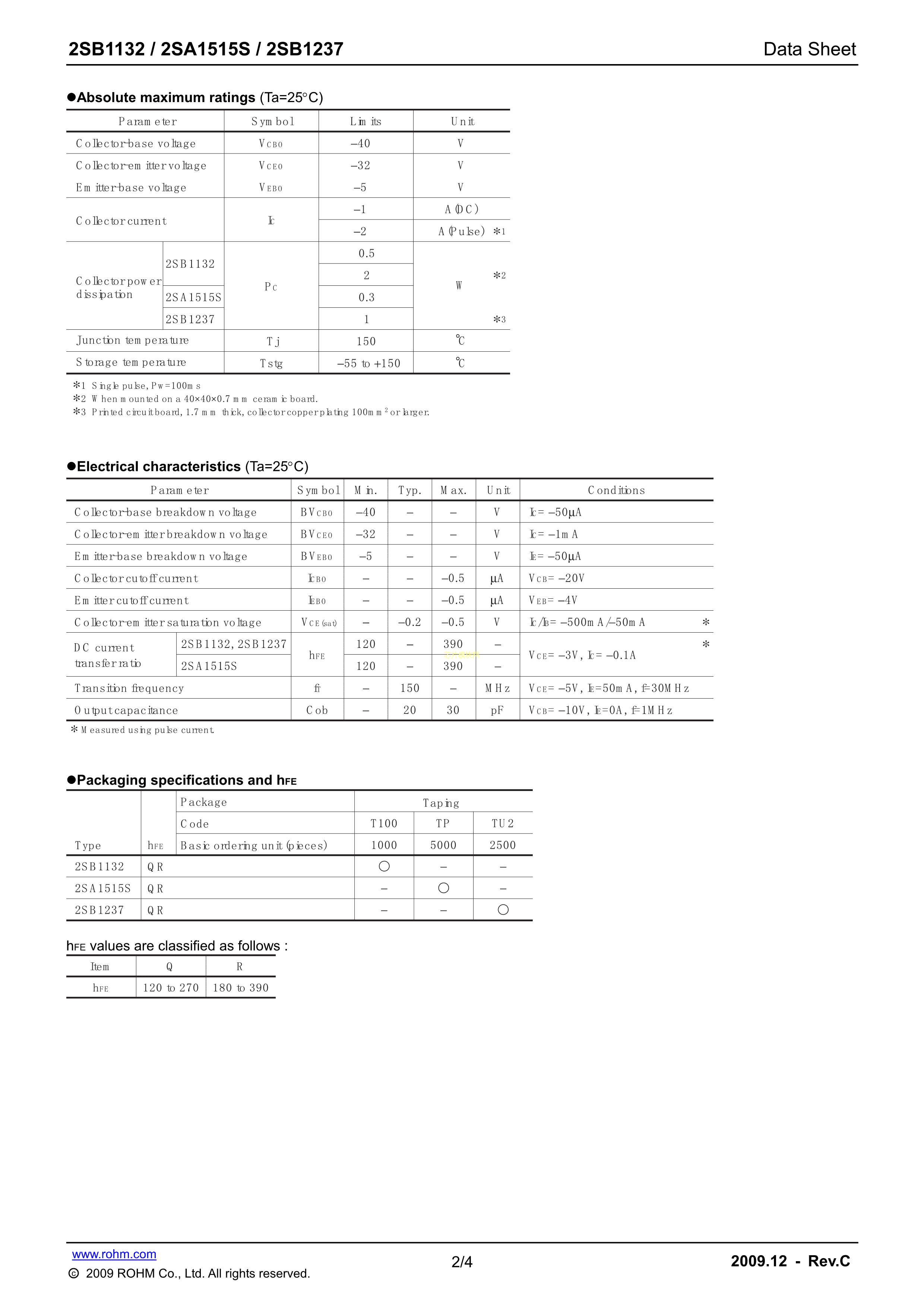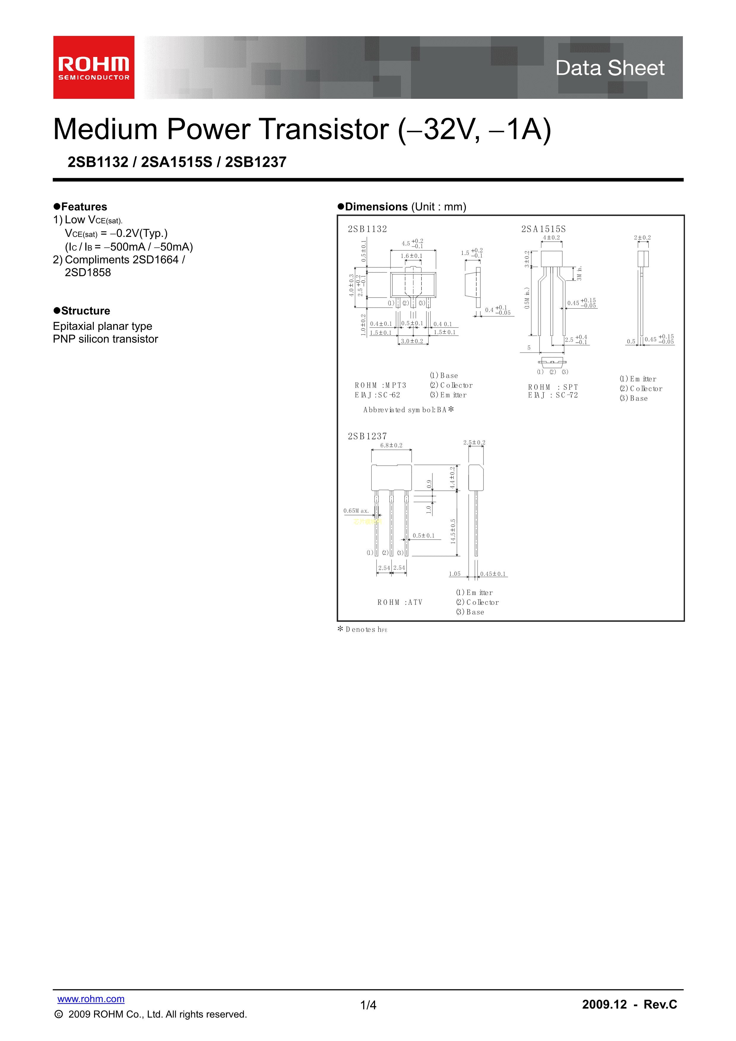 2SB1132FD5T100R数据手册SOT-89(SOT-89-3)封装ROHM(罗姆)PDF规格