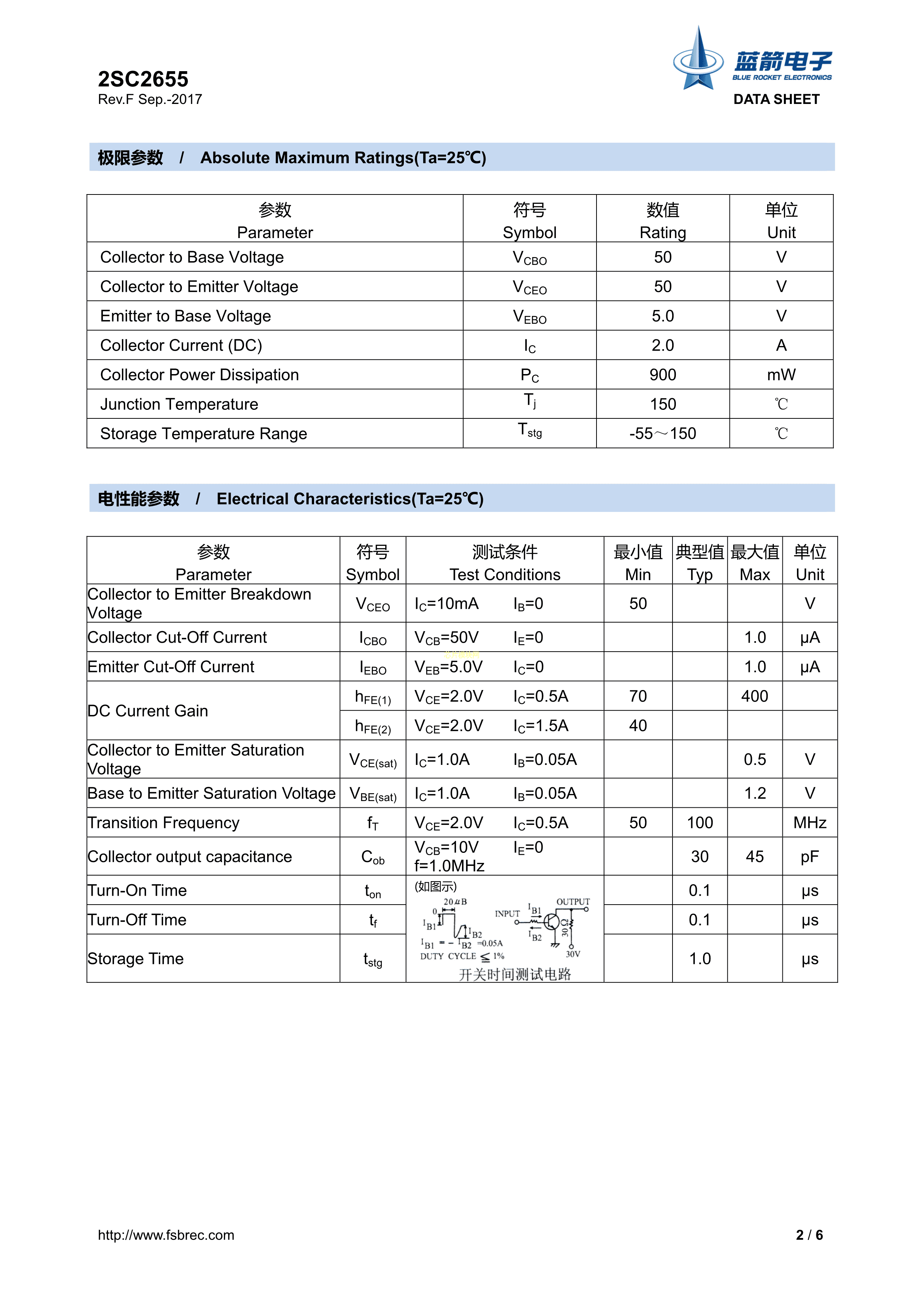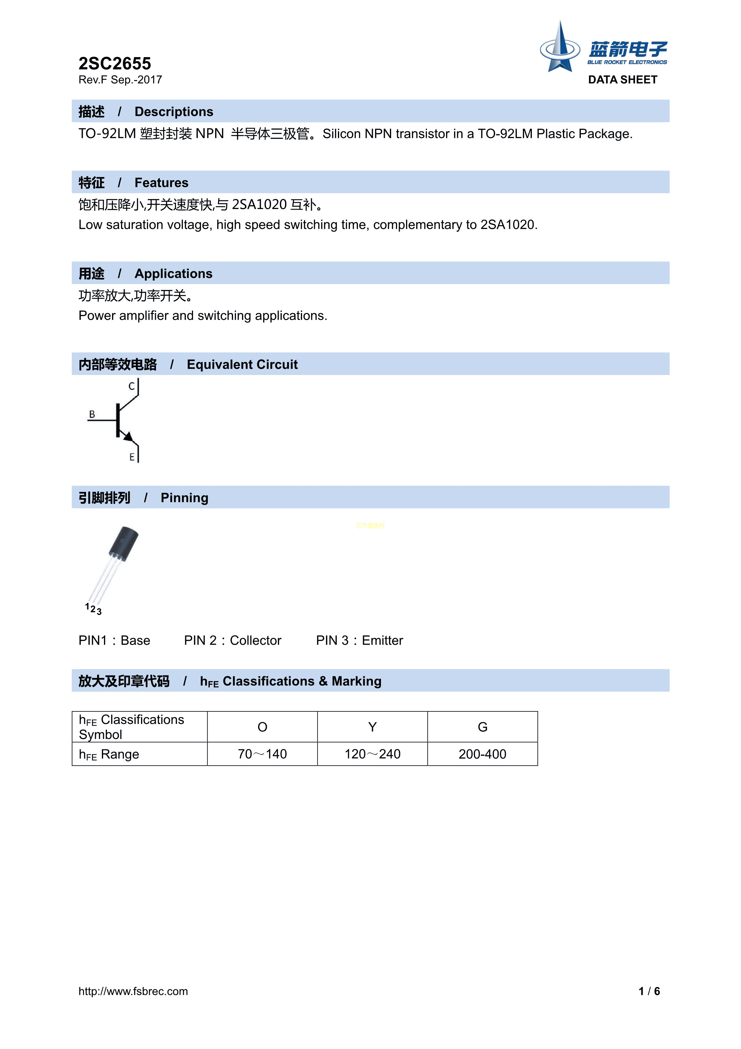 2SC2655数据手册TO-92LM封装BLUEROCKET(蓝箭)PDF规格书,中英文下载