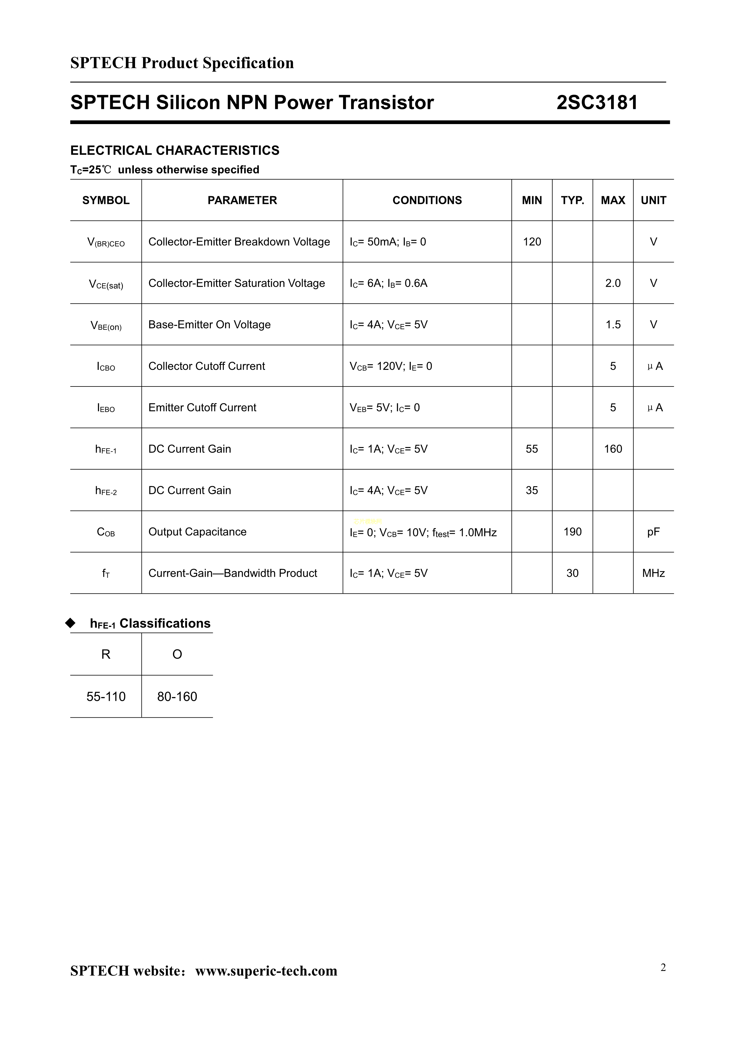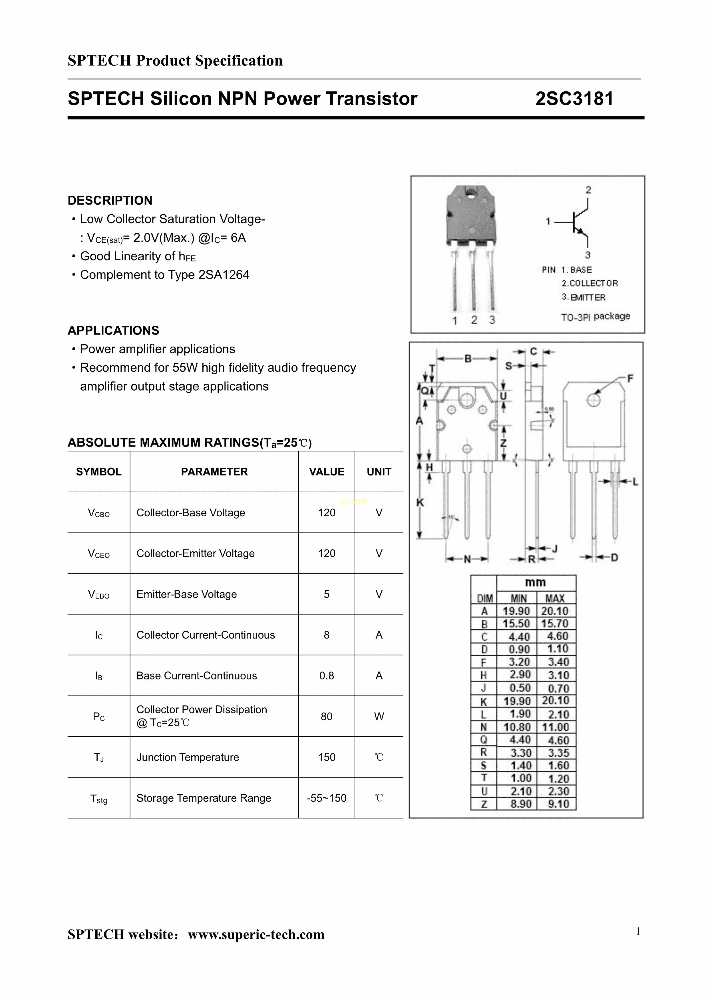 2SC3181数据手册TO-3PI封装SPTECH(深圳质超)PDF规格书,中英文下载