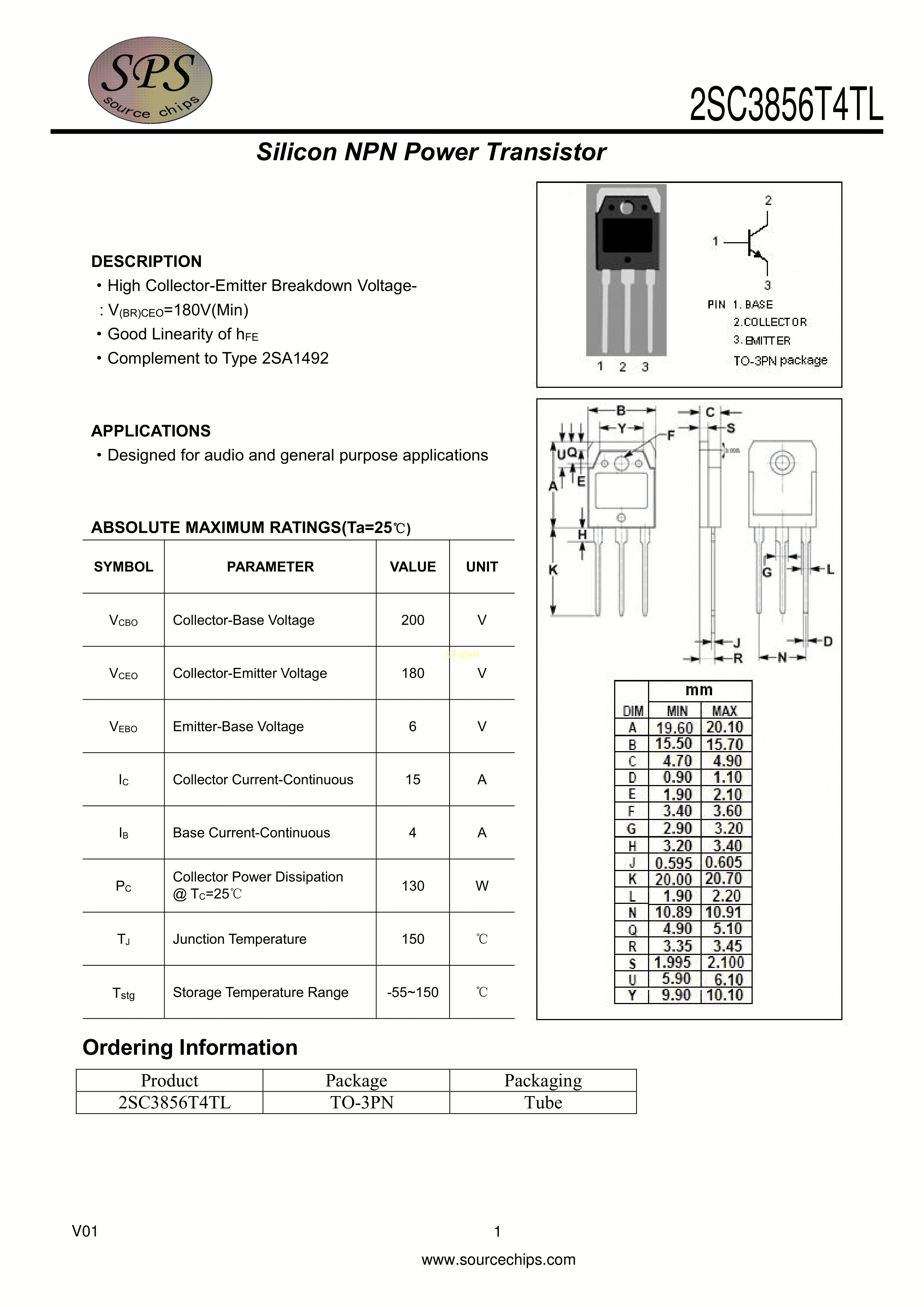 2SC3856T4TL数据手册TO-3PN封装SPS(美国源芯)PDF规格书,中英文下载