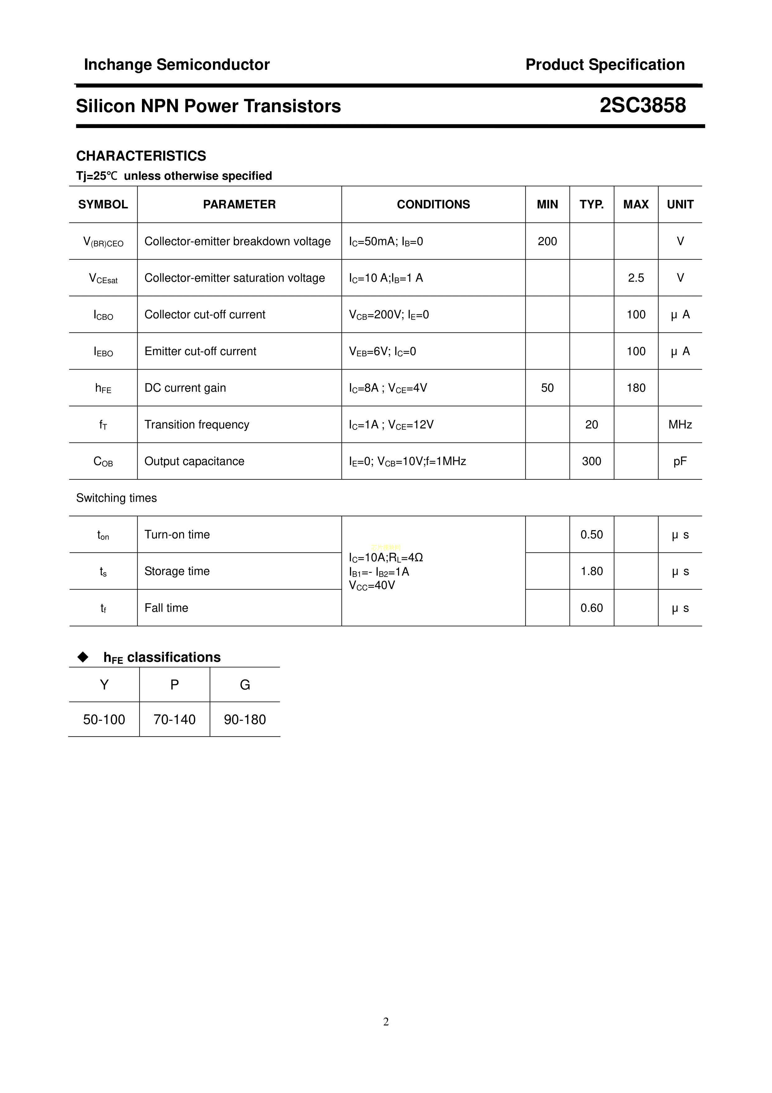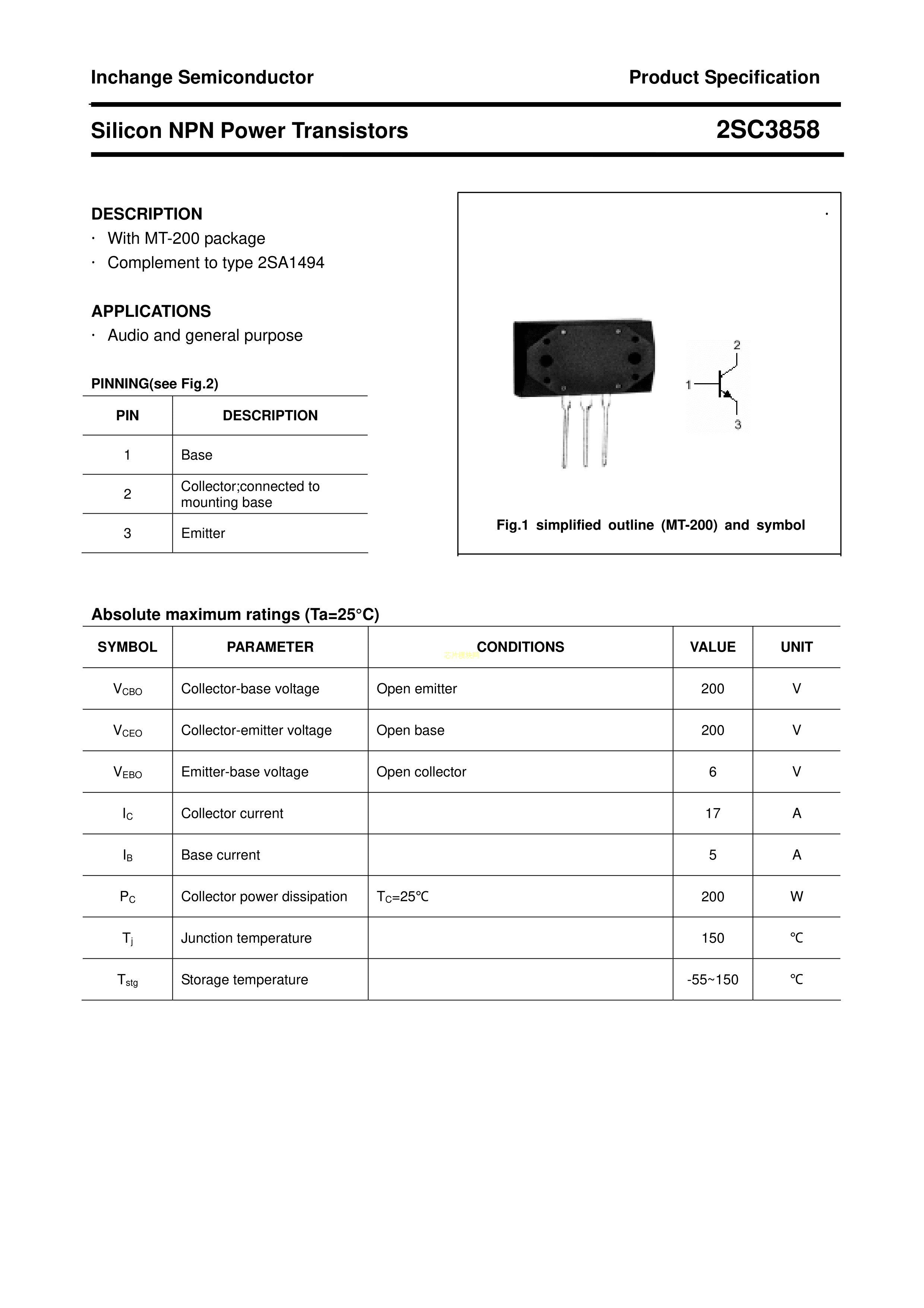 2SC3858数据手册TO-MT-200封装ISC(无锡固电)PDF规格书,中英文下载