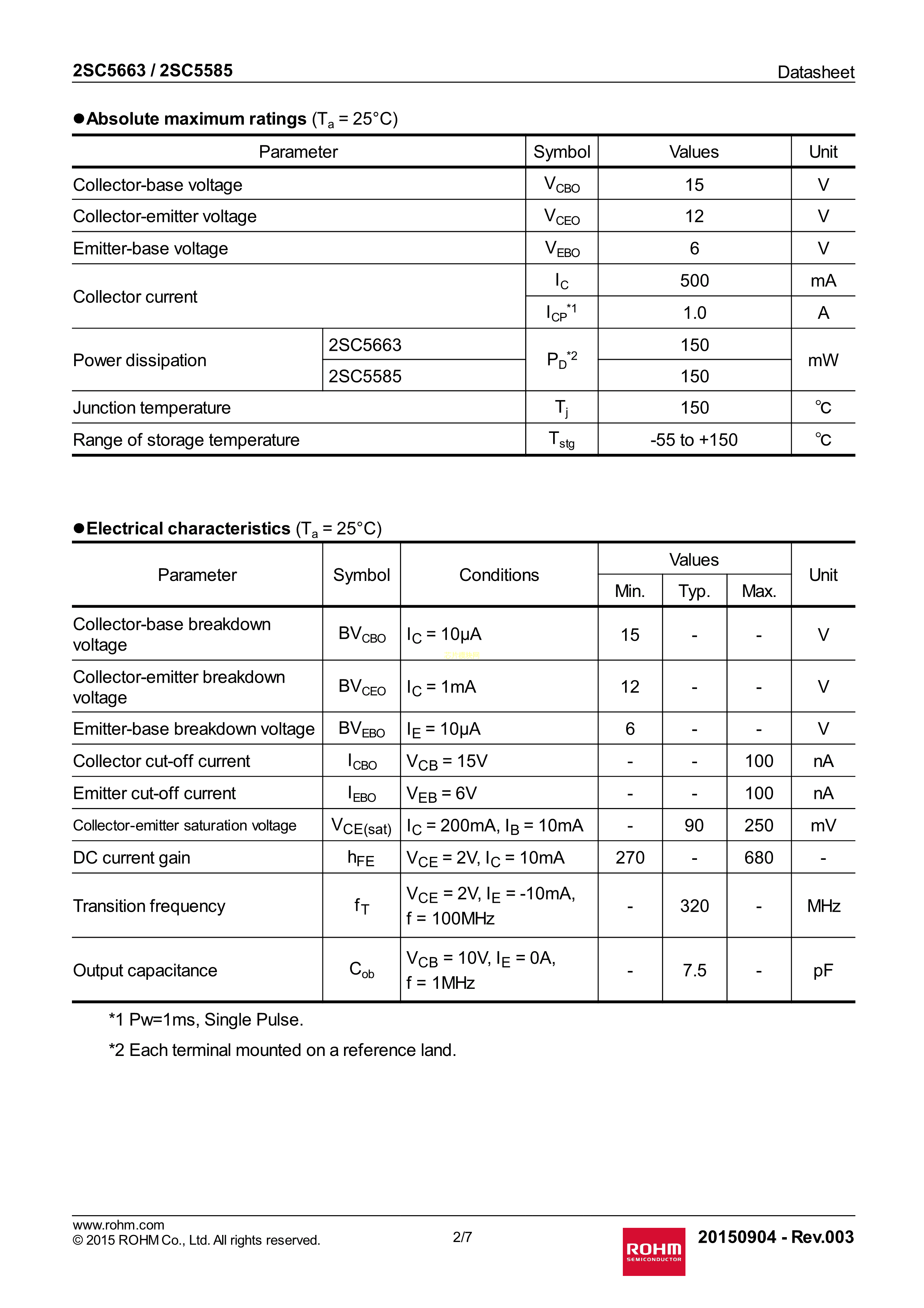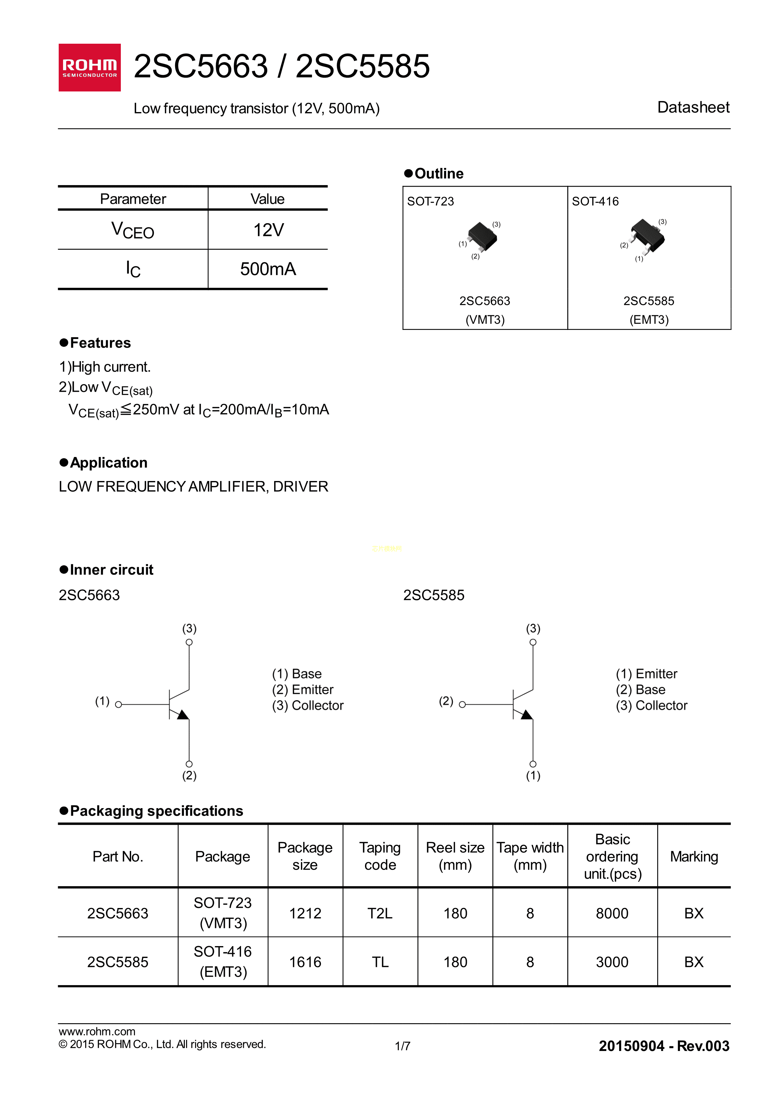 2SC5663GT2L数据手册VMT3封装ROHM(罗姆)PDF规格书,中英文下载