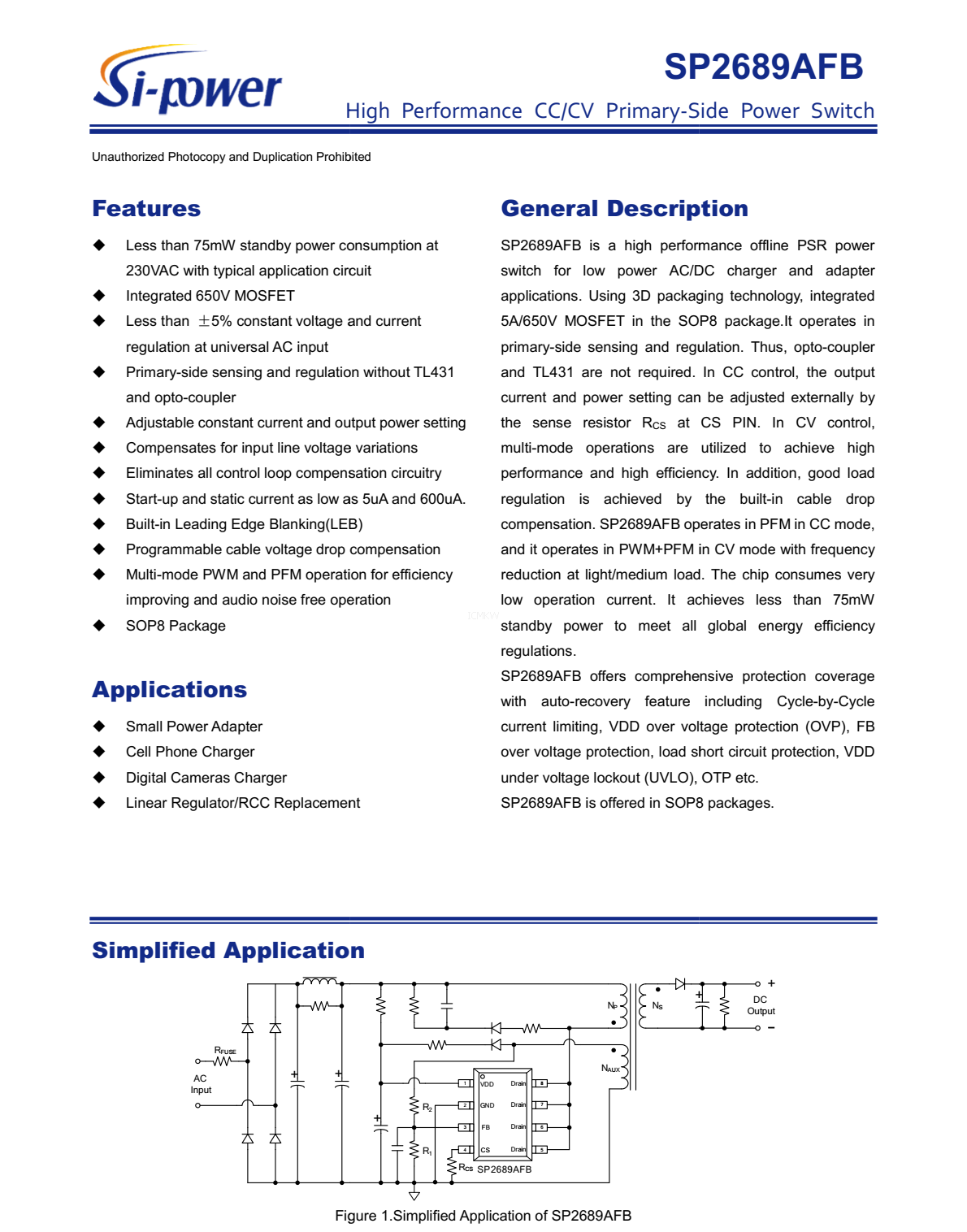 SP2689AFB 交流AC-DC控制器芯片