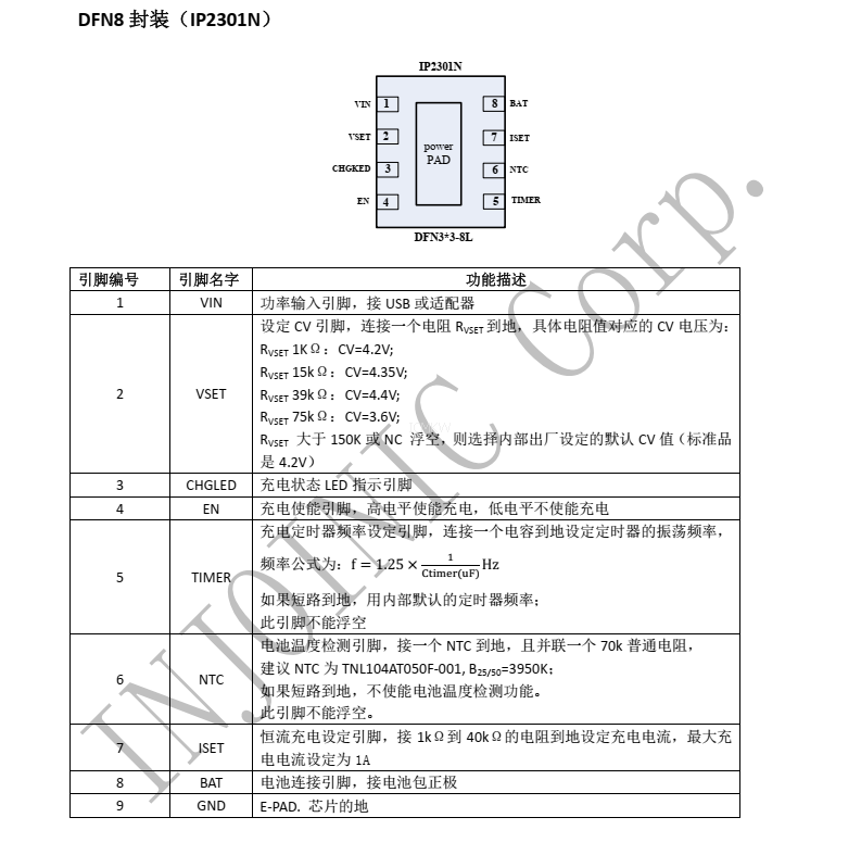 IP2301N,1A高压线性锂电池充电管理芯片规格书下载